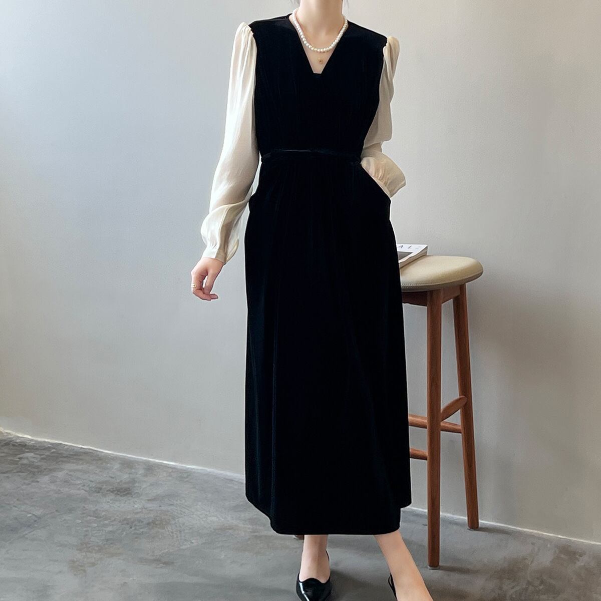 ワンピース フレア マキシ 長袖 Vネック フェミニン リボン ベルト ウエストマーク 切り替えデザイン ドッキング かわいい 大人可愛い きれいめ シンプル 上品 レトロ ガーリー エレガント モダン フォーマル ラブリー 都会的 クラシカル ロマンティック 無地 春 秋 デート お出かけ パーティー イベント 女子会 休日 体型カバー 美脚 脚長 普段使い 着回し レイヤード モテ トレンド 流行 インスタ映え M L 小さいサイズ 大きいサイズ 白 ホワイト 黒 モノトーン ベーシックカラー