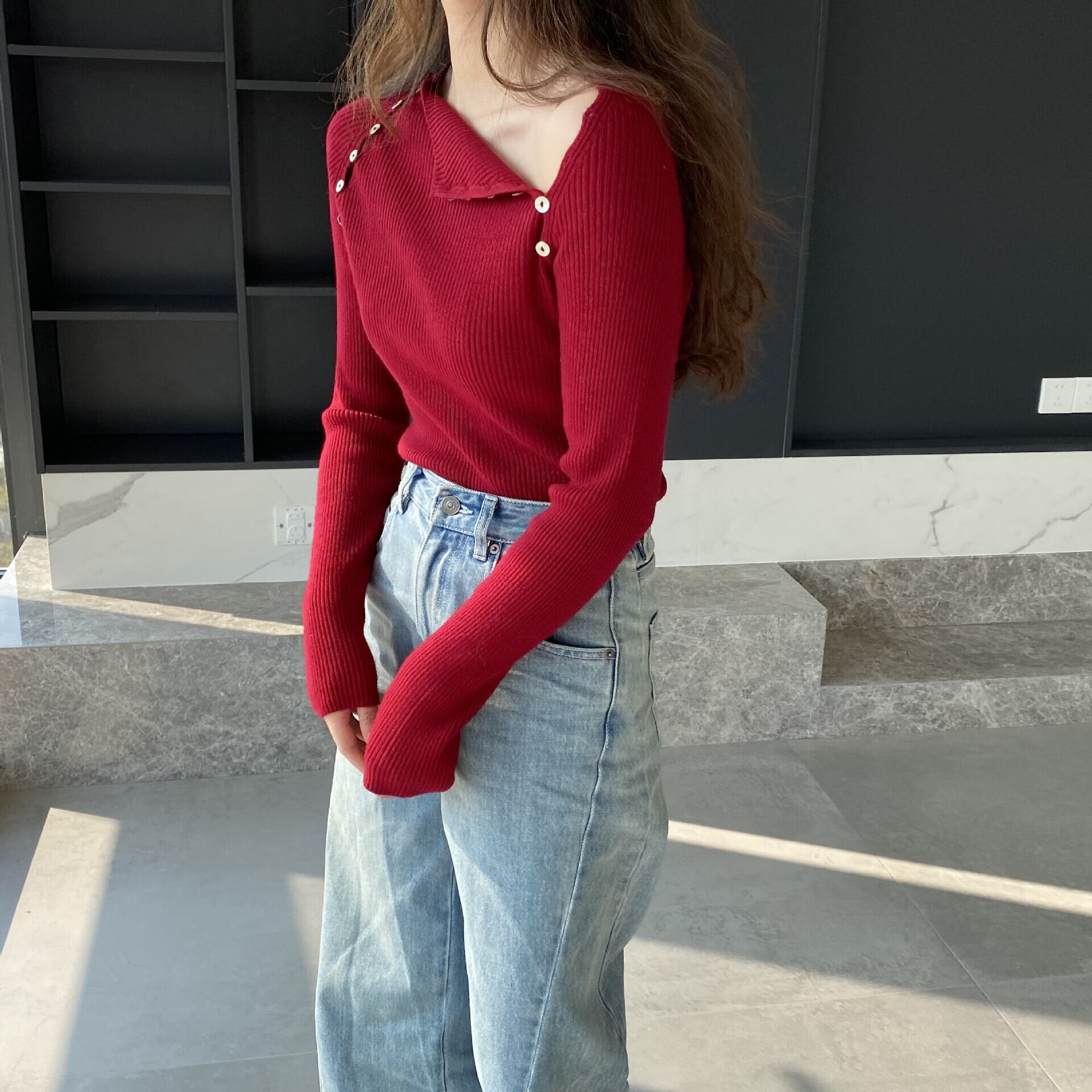 トップス ニット セーター レディース 長袖 Vネック 襟付き 角襟 スリム 細身 スマート フェミニン ストリート リブニット かわいい 大人可愛い シンプル カジュアル おしゃれ かっこいい こなれ感 ラフ スポーティー ガーリー クール 抜け感 ヴィンテージ ラブリー キュート ベーシック プレッピー アクティブ ナチュラル 無地 デート お出かけ イベント 休日 モノトーン 重ね着 韓国 オルチャン 楽ちん 普段使い 着回し レイヤード トレンド 流行 定番 S M L グレー ベージュ ピンク