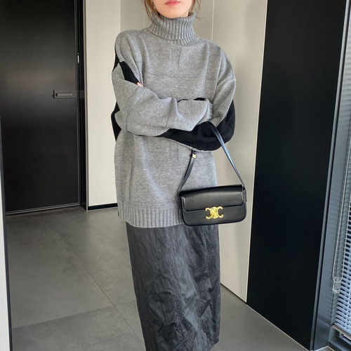 トップス ニット セーター ロング 長袖 ハイネック アシンメトリー 切り替え バイカラー 配色 ドッキング かわいい 大人可愛い 上品 おしゃれ かっこいい レトロ ガーリー ラブリー キュート 都会的 カントリー アクティブ 秋 冬 お出かけ パーティー イベント 旅行 女子会 休日 ショッピング ライブ カフェ 重ね着 楽ちん 暖かい 防寒 普段使い 着回し レイヤード トレンド 流行 インスタ映え ゆったり ゆる フリーサイズ 黒 ブラック 茶色 ブラウン グレー アプリコット ベーシックカラー