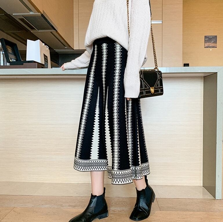 スカート ボトムス レディース フレア ミモレ ロング Aライン フェミニン 異国風 かわいい 大人可愛い きれいめ 上品 おしゃれ かっこいい レトロ ガーリー エレガント モダン 主役級 存在感 ラブリー キュート ロリータ プリンセス ロマンティック ストライプ 秋 冬 デート お出かけ パーティー イベント 女子会 休日 コンサート ライブ カフェ 重ね着 コーデ 体型カバー 美脚 脚長 普段使い 着回し モテ 清楚 トレンド 流行 インスタ映え フリーサイズ 白 ホワイト 黒 ブラック