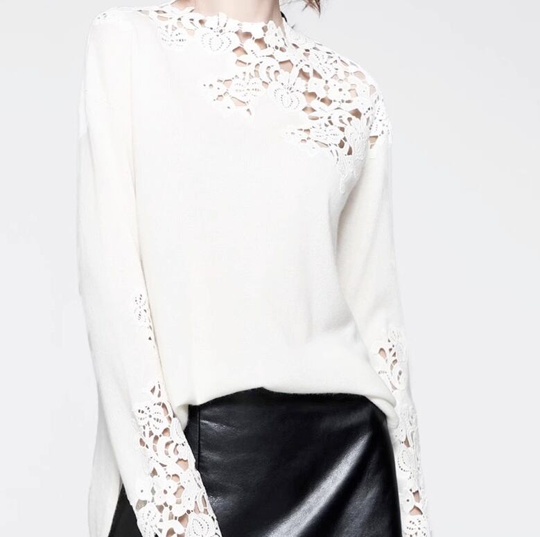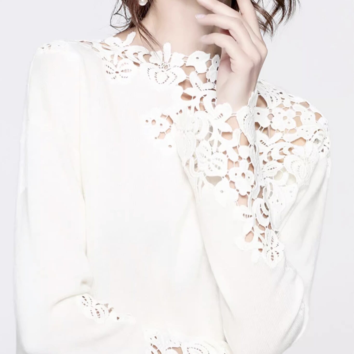 ニットの新定番!透け感とレースの刺繍が、シースルーながらも上品な存在感を放ち、秋冬のおしゃれに華やかさをプラス。きれいめなデザインでシンプルにおしゃれを楽しむことができます。モダンなエレガンスを持ちながら、レトロなガーリーさも感じるデザインは、どんなシーンでも自信を持って着こなせます。デートやお出かけ、女子会、休日、カフェなど、あらゆる場面で一緒に輝ける一着です。 色展開 ホワイト ブラック サイズ S M L XL 2XL 3XL サイズ(cm) S /肩幅 41 /バスト 88 /袖丈 50 /袖口 20 /着丈 59 M /肩幅 42 /バスト 92 /袖丈 51 /袖口 21 /着丈 60 L /肩幅 43 /バスト 96 /袖丈 52 /袖口 22 /着丈 61 XL /肩幅 44 /バスト 100 /袖丈 53 /袖口 23 /着丈 62 2XL /肩幅 45 /バスト 104 /袖丈 54 /袖口 24 /着丈 63 3XL /肩幅 46 /バスト 108 /袖丈 55 /袖口 25 /着丈 64 ※モニターの仕様や、角度によって多少色合いが異なる場合がございます。 ※サイズは平置きで測定しております。測り方や位置、素材の性質によりサイズに1-4cm程の誤差が生じる場合がございます。 【商品について】 ・こちらの商品は海外お取り寄せ商品です。 ・お手元に到着するまでに10-25日程度お時間をいただいておりますが、さらにお時間がかかってしまう場合や、欠品や不具合などにより商品をご用意できずご注文をキャンセルとさせていただく場合もございます。予めご了承下さいませ。 ・商品はすべて検品を行なった上で発送しております。到着後は、できるだけ早めに商品の状態をご確認願います。 ・海外製品のため日本製よりも縫製や糸の始末が甘い、微細なほつれ、匂いや微細な汚れなどといった場合がございます。その場合には不具合品の対象外となりますのでご了承ください。 ・万が一、初期不良や誤納品がございましたら、商品到着より5日以内にお知らせ下さい。誠意を持って早急に対応させていただきます。 【返品について】 ご注文確定後のキャンセルや内容変更はお受けすることができません。 不良品または誤納品の場合を除き、返品・交換はお受けできませんのでご了承ください。 何かご不明な点などがございましたら、お気軽にお問い合せくださいませ。 ts-1963
