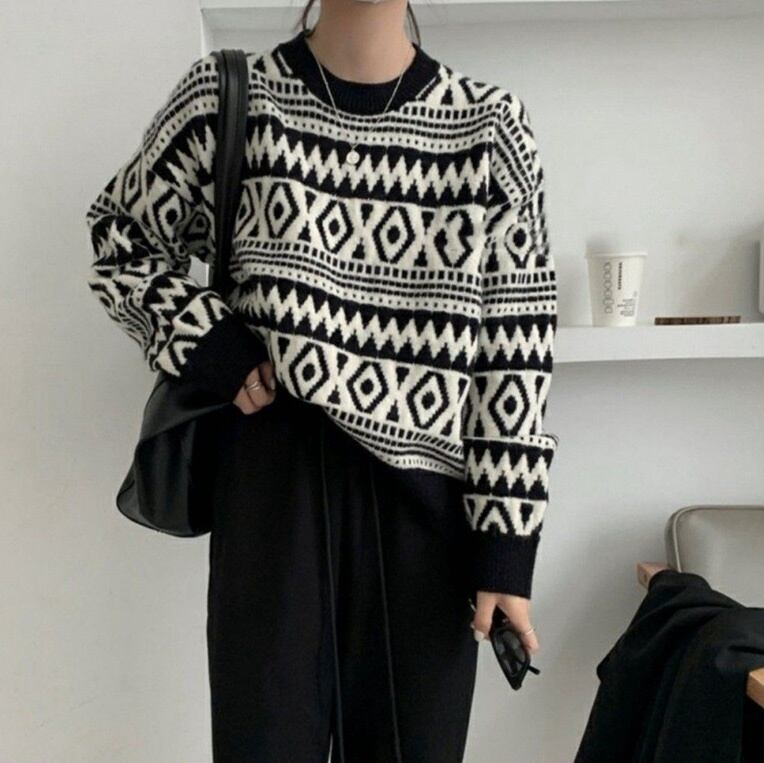 トップス ニット セーター レディース 長袖 Uネック ニット かわいい 大人可愛い きれいめ カジュアル おしゃれ かっこいい レトロ アジアン エスニック エキゾチック ラフ メンズライク マニッシュ 抜け感 アメリカン カントリー アクティブ 総柄 秋 冬 お出かけ イベント 旅行 公園 女子会 休日 ショッピング カフェ コーデ 楽ちん 暖かい 防寒 体型カバー 普段使い 着回し レイヤード 清楚 トレンド 流行 インスタ映え 定番 フリーサイズ 黒 ブラック 茶色 ブラウン グレー 緑 グリーン