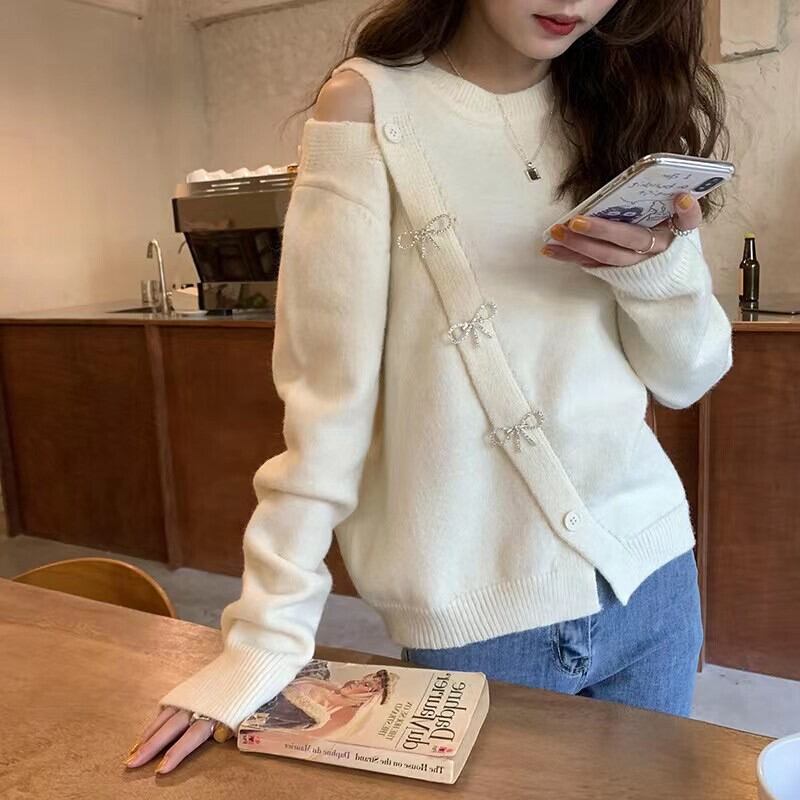 トップス ニット セーター レディース 長袖 Uネック アシンメトリー フェミニン リボン ニット かわいい 大人可愛い きれいめ 上品 おしゃれ かっこいい ガーリー ラブリー キュート ロリータ プリンセス 都会的 ラグジュアリー ロマンティック ナチュラル 秋 冬 デート お出かけ アウトドア 公園 女子会 休日 ショッピング ライブ カフェ フェス コーデ 楽ちん 暖かい 防寒 体型カバー 普段使い 着回し レイヤード 清楚 トレンド 流行 インスタ映え 定番 フリーサイズ 白 ホワイト レッド