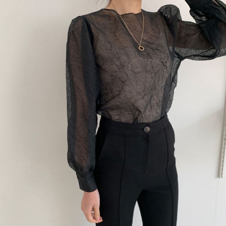 トップス シャツ ブラウス レディース 長袖 ボリューム袖 Uネック ラウンドネック フェミニン 透け感 シースルー メッシュ かわいい 大人可愛い きれいめ シンプル 上品 おしゃれ ガーリー 個性的 クール モード系 エレガント モダン ラブリー キュート 都会的 ラグジュアリー 無地 春 秋 デート お出かけ パーティー イベント 女子会 休日 ショッピング ライブ 合コン コンパ カフェ フェス 重ね着 レイヤード モテ 清楚 トレンド 流行 インスタ映え フリーサイズ 黒 ブラック アプリコット