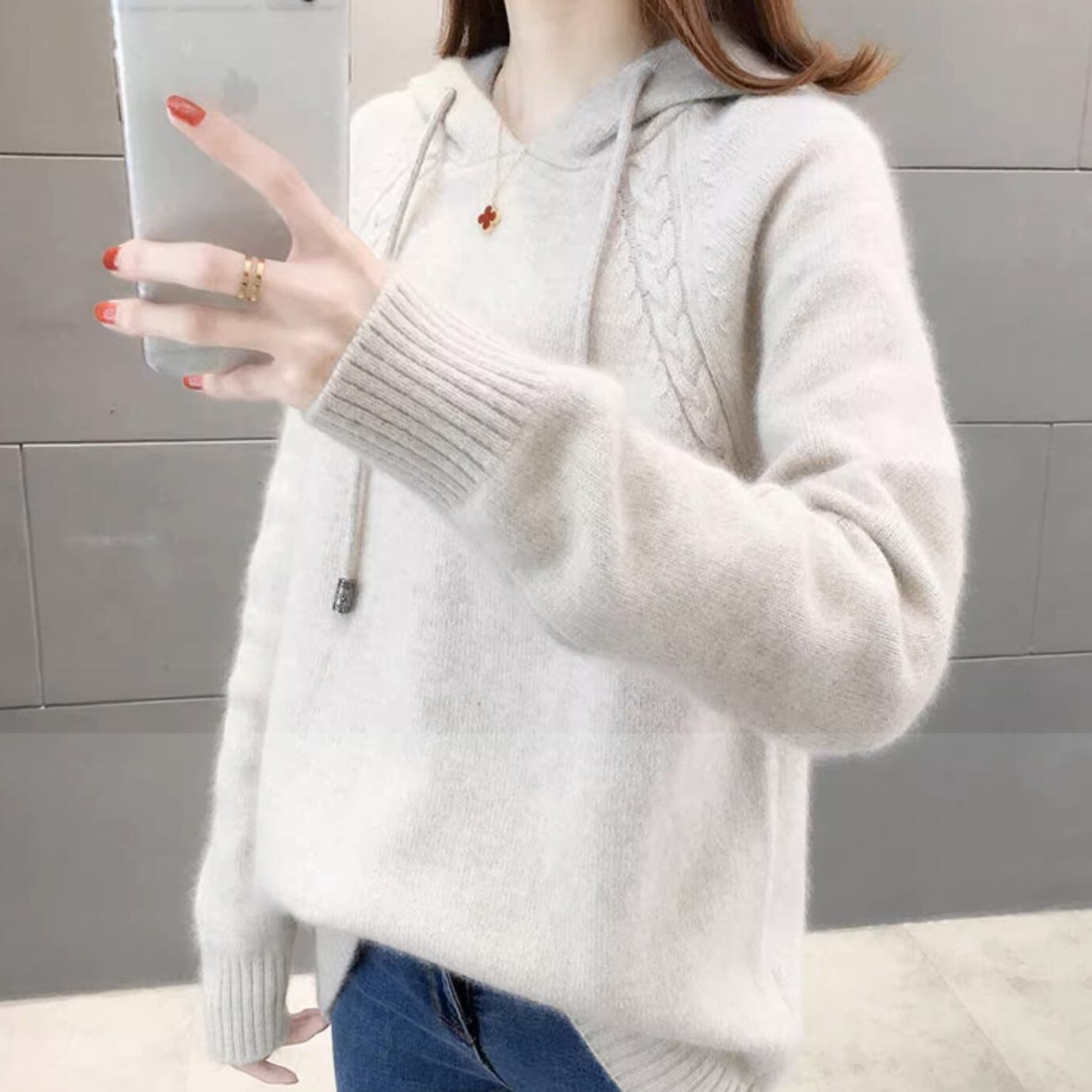 シンプルでおしゃれなデザインで、秋冬のファッションにぴったりのプルオーバー パーカー。フェミニンなケーブルニット編みが、大人可愛い雰囲気を演出し、レトロからスポーティーまで、さまざまなスタイルに合わせて楽しめます。メンズライクなカジュアルさから、ガーリーでラブリーな雰囲気まで、自分らしいコーディネートが可能です。トレンド感と定番の要素を組み合わせ、インスタ映えする一枚に仕上げました。このニットは、着回し力も抜群で、防寒対策もバッチリ。秋冬のおしゃれを楽しむなら、ぜひお試しください。 色展開 ホワイト レッド グレー ピンク ネイビー サイズ フリーサイズ サイズ(cm) フリーサイズ /バスト 96 /袖丈 64 /着丈 60 ※モニターの仕様や、角度によって多少色合いが異なる場合がございます。 ※サイズは平置きで測定しております。測り方や位置、素材の性質によりサイズに1-4cm程の誤差が生じる場合がございます。 【商品について】 ・こちらの商品は海外お取り寄せ商品です。 ・お手元に到着するまでに10-25日程度お時間をいただいておりますが、さらにお時間がかかってしまう場合や、欠品や不具合などにより商品をご用意できずご注文をキャンセルとさせていただく場合もございます。予めご了承下さいませ。 ・商品はすべて検品を行なった上で発送しております。到着後は、できるだけ早めに商品の状態をご確認願います。 ・海外製品のため日本製よりも縫製や糸の始末が甘い、微細なほつれ、匂いや微細な汚れなどといった場合がございます。その場合には不具合品の対象外となりますのでご了承ください。 ・万が一、初期不良や誤納品がございましたら、商品到着より5日以内にお知らせ下さい。誠意を持って早急に対応させていただきます。 【返品について】 ご注文確定後のキャンセルや内容変更はお受けすることができません。 不良品または誤納品の場合を除き、返品・交換はお受けできませんのでご了承ください。 何かご不明な点などがございましたら、お気軽にお問い合せくださいませ。 ts-2032