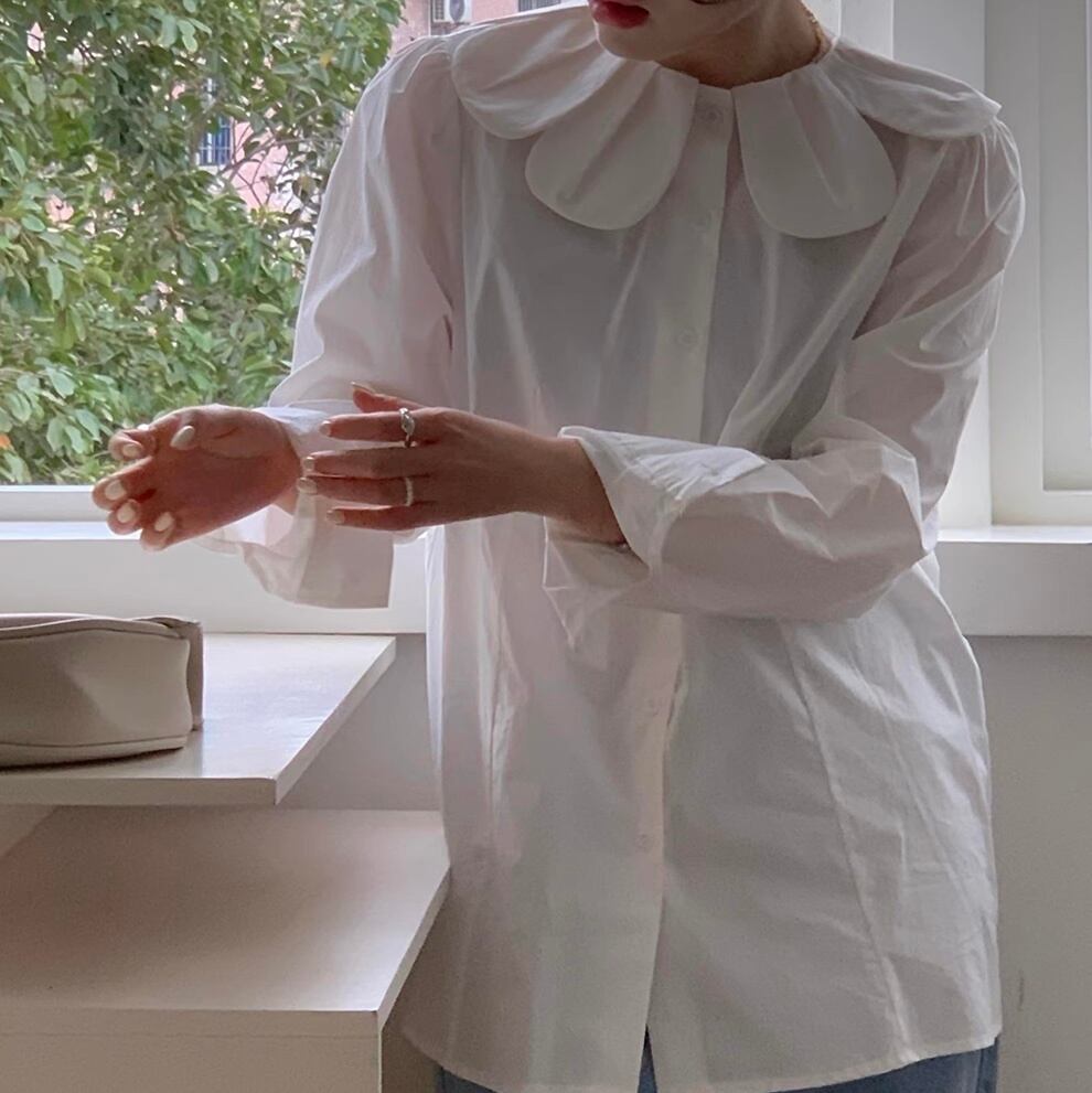 トップス シャツ ブラウス 長袖 襟付き 丸襟 フェミニン 前開き かわいい 大人可愛い きれいめ シンプル 上品 おしゃれ かっこいい こなれ感 ガーリー 個性的 クール モード系 ラブリー キュート ゴシック ロリータ プリンセス 都会的 ロマンティック 無地 春 秋 お出かけ パーティー イベント リゾート 旅行 レストラン 女子会 休日 バカンス ショッピング ライブ カフェ フェス 重ね着 お揃い 普段使い 着回し レイヤード モテ 清楚 トレンド 流行 インスタ映え フリーサイズ 白 ホワイト