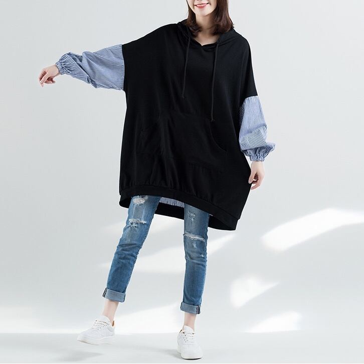 トップス プルオーバー パーカー レディース ロング 長袖 フード Iライン ストリート ポケット 切り替えデザイン ドッキング かわいい 大人可愛い きれいめ シンプル カジュアル 上品 おしゃれ かっこいい ボーイッシュ スポーティー ルーズ 個性的 抜け感 キュート アクティブ ストライプ 春 秋 お出かけ イベント 旅行 女子会 休日 ライブ カフェ フェス 楽ちん 体型カバー 普段使い 着回し レイヤード トレンド 流行 インスタ映え 定番 L XL 大きいサイズ ビッグ ゆったり 黒 ブラック
