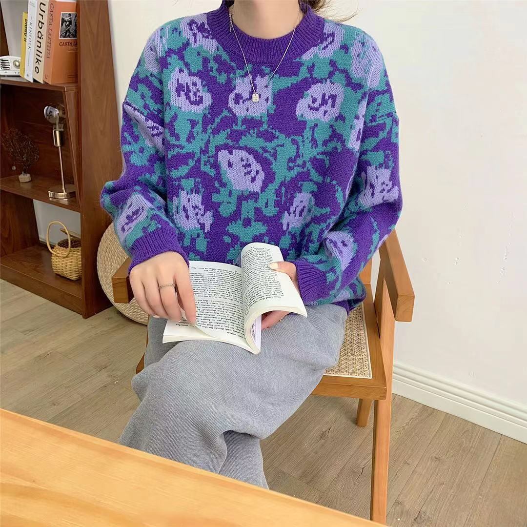 トップス ニット セーター プルオーバー レディース 長袖 Uネック ラウンドネック フェミニン ニット かわいい 大人可愛い 上品 おしゃれ レトロ ガーリー エレガント ラブリー キュート プレッピー カントリー ロマンティック 花柄 フラワー 秋 冬 お出かけ イベント 旅行 女子会 休日 高原 ホテル ガーデン ショッピング ライブ カフェ 重ね着 お揃い 楽ちん 暖かい 防寒 体型カバー 普段使い 着回し レイヤード トレンド 流行 インスタ映え 定番 フリーサイズ 紫 ピンク パープル