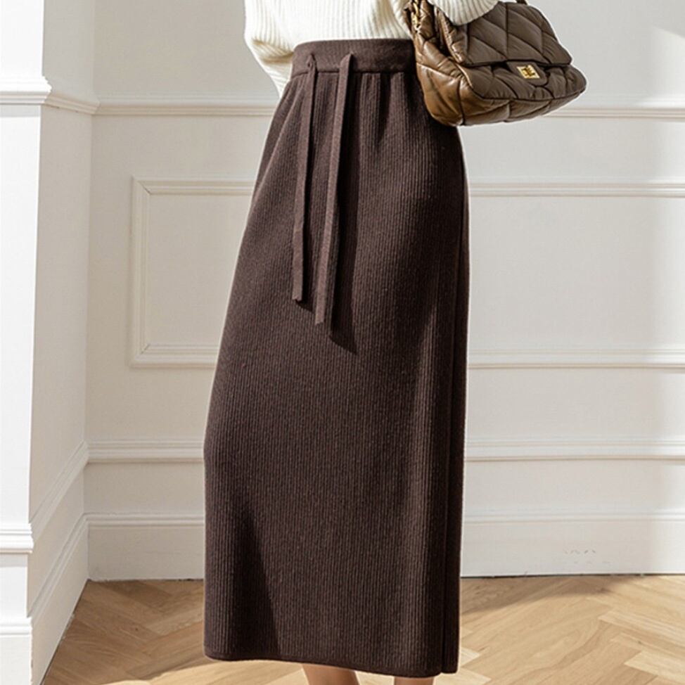 スカート ボトムス レディース カラースカート ニットスカート ロングスカート ロング マキシ Iライン フェミニン ウエストリボン ハイウエスト ウエストゴム ニット かわいい 大人可愛い きれいめ シンプル 上品 おしゃれ かっこいい こなれ感 ガーリー モード系 エレガント モダン 無地 秋 冬 デート お出かけ イベント 女子会 休日 ショッピング コンサート ライブ カフェ 体型カバー 脚長 普段使い 着回し トレンド 流行 インスタ映え フリーサイズ 白 ホワイト 黒 ブラック 茶色 ブラウン