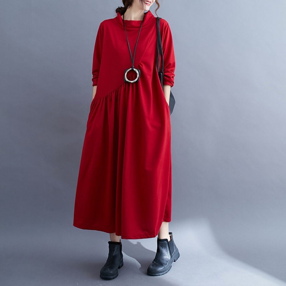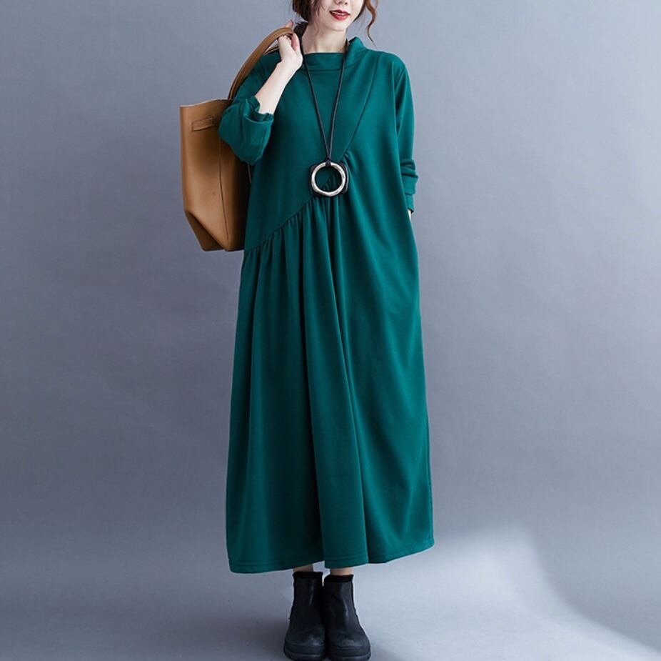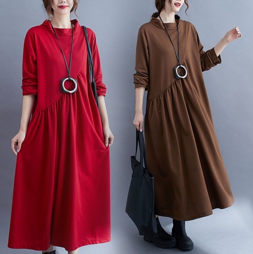一枚でトレンド感たっぷり!大人可愛いフレアロングワンピースが登場。ハイネックとアシンメトリーのデザインがおしゃれさを引き立て、春秋のお出かけや女子会、休日にぴったり。Mから2XLまでのサイズ展開で、体型カバーもバッチリ。シンプルな無地デザインなので、重ね着やレイヤードにも最適。ブラック、ブラウン、ブルー、レッド、グリーンのカラーバリエーションで、お気に入りの一枚を見つけてください。自分らしいスタイルでインスタ映えを叶える、今シーズンのマストハブアイテムです。 色展開 レッド グリーン ブラック ブラウン ブルー サイズ M L XL 2XL サイズ(cm) M /肩幅 40 /バスト 106 /袖丈 54 /総丈 113 L /肩幅 41 /バスト 110 /袖丈 55 /総丈 114 XL /肩幅 42 /バスト 114 /袖丈 56 /総丈 115 2XL /肩幅 43 /バスト 118 /袖丈 57 /総丈 116 ※モニターの仕様や、角度によって多少色合いが異なる場合がございます。 ※サイズは平置きで測定しております。測り方や位置、素材の性質によりサイズに1-4cm程の誤差が生じる場合がございます。 【商品について】 ・こちらの商品は海外お取り寄せ商品です。 ・お手元に到着するまでに10-25日程度お時間をいただいておりますが、さらにお時間がかかってしまう場合や、欠品や不具合などにより商品をご用意できずご注文をキャンセルとさせていただく場合もございます。予めご了承下さいませ。 ・商品はすべて検品を行なった上で発送しております。到着後は、できるだけ早めに商品の状態をご確認願います。 ・海外製品のため日本製よりも縫製や糸の始末が甘い、微細なほつれ、匂いや微細な汚れなどといった場合がございます。その場合には不具合品の対象外となりますのでご了承ください。 ・万が一、初期不良や誤納品がございましたら、商品到着より5日以内にお知らせ下さい。誠意を持って早急に対応させていただきます。 【返品について】 ご注文確定後のキャンセルや内容変更はお受けすることができません。 不良品または誤納品の場合を除き、返品・交換はお受けできませんのでご了承ください。 何かご不明な点などがございましたら、お気軽にお問い合せくださいませ。 op-1439
