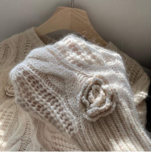 トップス ニット セーター プルオーバー レディース 長袖 ラウンドネック フェミニン ケーブルニット かわいい 大人可愛い きれいめ 上品 おしゃれ かっこいい レトロ こなれ感 ガーリー エレガント モダン 抜け感 ラブリー キュート クラシカル カントリー ナチュラル 花柄 フラワー 秋 冬 お出かけ お泊まり 旅行 女子会 休日 ショッピング カフェ 暖かい 防寒 普段使い 着回し レイヤード モテ 清楚 トレンド 流行 フリーサイズ 白 ホワイト 茶色 ブラウン ベージュ カーキ キャメル