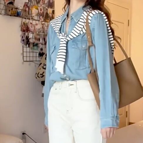トップス シャツ ブラウス デニム 前開き 長袖 Vネック 襟付き ポケット ボタン ヴィンテージ アメカジ ブルーデニム かわいい 大人可愛い きれいめ シンプル カジュアル おしゃれ かっこいい こなれ感 ラフ メンズライク マニッシュ ボーイッシュ ガーリー 抜け感 ベーシック アメリカン プレッピー カントリー アクティブ ナチュラル ワイルド 無地 春 秋 お出かけ アウトドア キャンプ 旅行 休日 ツーリング 重ね着 楽ちん 普段使い 着回し レイヤード 定番 S M L XL 水色 ブルー