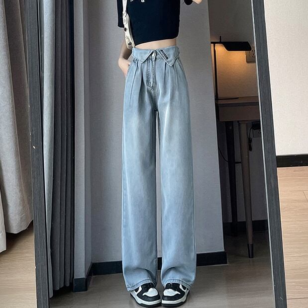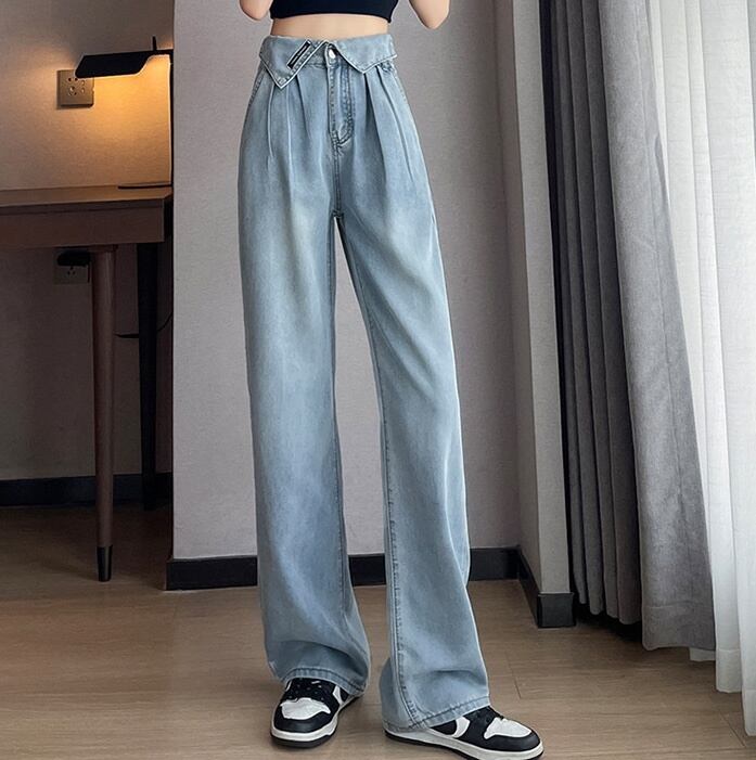 パンツ ボトムス レディース Gパン ロング ストレート ストリート ハイウエスト デニム ブルーデニム 薄手 かわいい 大人可愛い シンプル カジュアル おしゃれ かっこいい レトロ こなれ感 ラフ ボーイッシュ スポーティー ルーズ キュート ベーシック アメリカン プレッピー アクティブ ナチュラル 無地 春 夏 デート お出かけ 旅行 公園 女子会 休日 カフェ 室内 楽ちん 体型カバー 美脚 脚長 普段使い 着回し ロールアップ トレンド 流行 インスタ映え 定番 XS S M 水色 ブルー