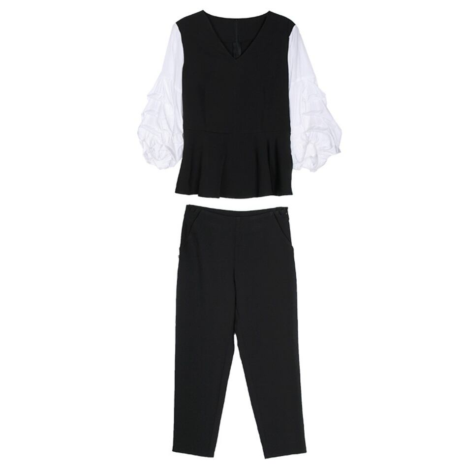 華やかなフォーマルスタイルからカジュアルなお出かけまで、大人可愛い着こなしを叶える上下セット。ボリューム袖やベルト付きのトップスとテーパードパンツで、こなれ感溢れるエレガントなルックスを演出。着回し力抜群の無地デザインで、季節を問わず活躍するアイテム。Mから4XLまでのサイズ展開で、美脚効果も期待できる一着です。 色展開 ブラック サイズ M L XL 2XL 3XL 4XL サイズ(cm) M /肩幅 37 /バスト 90 /着丈 58 /パンツ丈 85 L /肩幅 38 /バスト 94 /着丈 59 /パンツ丈 86 XL /肩幅 39 /バスト 98 /着丈 60 /パンツ丈 87 2XL /肩幅 40 /バスト 102 /着丈 61 /パンツ丈 88 3XL /肩幅 41 /バスト 106 /着丈 62 /パンツ丈 89 4XL /肩幅 42 /バスト 110 /着丈 63 /パンツ丈 90 ※モニターの仕様や、角度によって多少色合いが異なる場合がございます。 ※サイズは平置きで測定しております。測り方や位置、素材の性質によりサイズに1-4cm程の誤差が生じる場合がございます。 【商品について】 ・こちらの商品は海外お取り寄せ商品です。 ・お手元に到着するまでに10-25日程度お時間をいただいておりますが、さらにお時間がかかってしまう場合や、欠品や不具合などにより商品をご用意できずご注文をキャンセルとさせていただく場合もございます。予めご了承下さいませ。 ・商品はすべて検品を行なった上で発送しております。到着後は、できるだけ早めに商品の状態をご確認願います。 ・海外製品のため日本製よりも縫製や糸の始末が甘い、微細なほつれ、匂いや微細な汚れなどといった場合がございます。その場合には不具合品の対象外となりますのでご了承ください。 ・万が一、初期不良や誤納品がございましたら、商品到着より5日以内にお知らせ下さい。誠意を持って早急に対応させていただきます。 【返品について】 ご注文確定後のキャンセルや内容変更はお受けすることができません。 不良品または誤納品の場合を除き、返品・交換はお受けできませんのでご了承ください。 何かご不明な点などがございましたら、お気軽にお問い合せくださいませ。 al-355