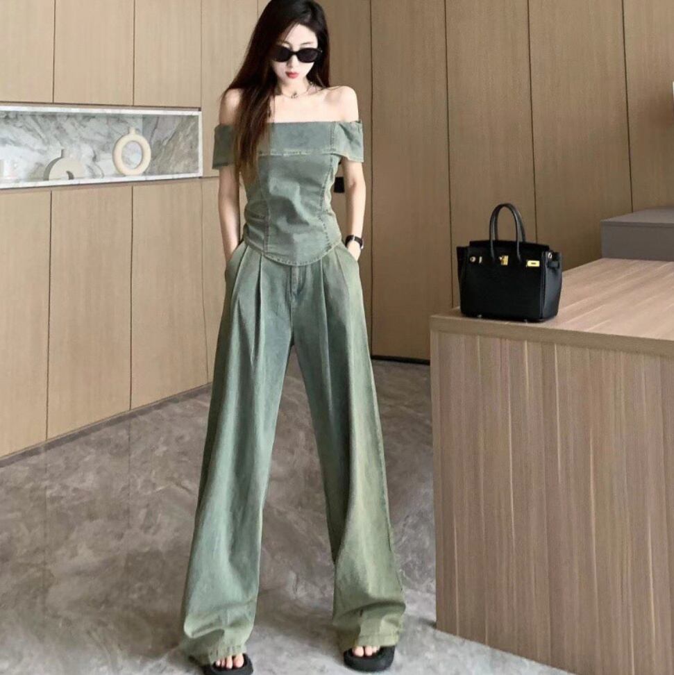 のリゾートシーンにぴったりのアクティブ&大人可愛いセット!ストレートパンツとノースリーブトップスの上下セットで、抜け感溢れるスタイルを演出。ウォッシュデニムがさわやかな印象を与え、S〜XLのサイズ展開で誰にでもフィット。トレンド感満載のデニムで、インスタ映え間違いなしのおしゃれを楽しもう! 色展開 ブルー グリーン サイズ S M L XL サイズ(cm) S /ウエスト 64 /ヒップ 98 /パンツ丈 103 M /ウエスト 68 /ヒップ 102 /パンツ丈 104 L /ウエスト 72 /ヒップ 106 /パンツ丈 105 XL /ウエスト 76 /ヒップ 110 /パンツ丈 106 ※モニターの仕様や、角度によって多少色合いが異なる場合がございます。 ※サイズは平置きで測定しております。測り方や位置、素材の性質によりサイズに1-4cm程の誤差が生じる場合がございます。 【商品について】 ・こちらの商品は海外お取り寄せ商品です。 ・お手元に到着するまでに10-25日程度お時間をいただいておりますが、さらにお時間がかかってしまう場合や、欠品や不具合などにより商品をご用意できずご注文をキャンセルとさせていただく場合もございます。予めご了承下さいませ。 ・商品はすべて検品を行なった上で発送しております。到着後は、できるだけ早めに商品の状態をご確認願います。 ・海外製品のため日本製よりも縫製や糸の始末が甘い、微細なほつれ、匂いや微細な汚れなどといった場合がございます。その場合には不具合品の対象外となりますのでご了承ください。 ・万が一、初期不良や誤納品がございましたら、商品到着より5日以内にお知らせ下さい。誠意を持って早急に対応させていただきます。 【返品について】 ご注文確定後のキャンセルや内容変更はお受けすることができません。 不良品または誤納品の場合を除き、返品・交換はお受けできませんのでご了承ください。 何かご不明な点などがございましたら、お気軽にお問い合せくださいませ。 al-359
