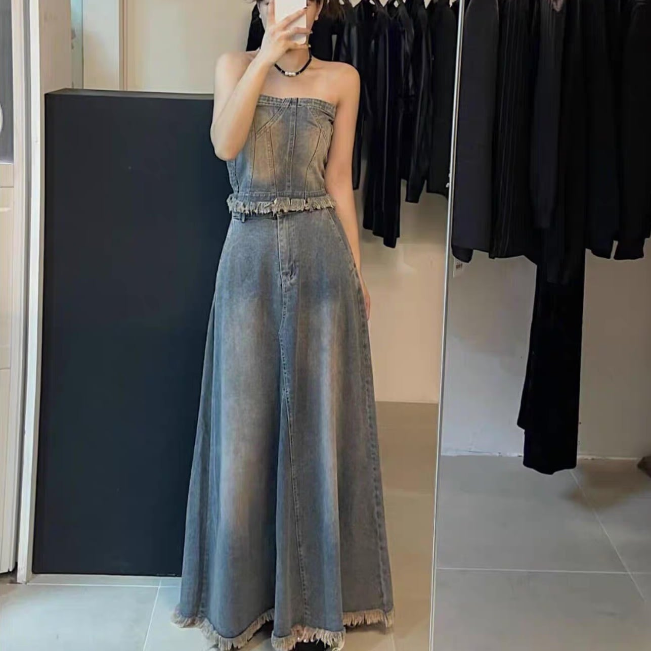 上下セット 2点セット トップス スカート ボトムス ビスチェ デニム マキシ フレア Aライン ハイウエスト ヴィンテージ アメカジ ブルーデニム かわいい 大人可愛い きれいめ カジュアル おしゃれ かっこいい レトロ こなれ感 クール 抜け感 キュート ベーシック アメリカン カントリー アクティブ ナチュラル ワイルド セクシー 無地 夏 デート お出かけ イベント リゾート 旅行 女子会 休日 バカンス 体型カバー 脚長 普段使い 着回し トレンド インスタ映え 定番 S M L XL ブルー
