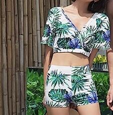 水着 スイムウェア レディース 体型カバー ショートパンツ 短パン パレオ Tシャツ セパレート 半袖 セット スリーピース 上下セット 3点セット 大人可愛い きれいめ ナチュラル 華やか 大人っぽい おしゃれ お洒落 クール スタイリッシュ モダン かっこいい アジアン ベーシック フェミニン ヘルシー リーフ ボタニカル リゾート 旅行 温泉 プール 夏 海 美脚 脚長 スタイルアップ 高見え 格上げ モテ インスタ映え 日除け スタイルカバー こなれ感 日焼け防止 2XL M L XL グリーン