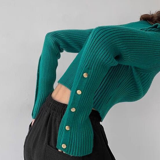 トップス ニット セーター レディース ショート 長袖 Vネック セーラーカラー フェミニン ストリート ボタン ヴィンテージ リブニット かわいい 大人可愛い カジュアル おしゃれ かっこいい レトロ マニッシュ スポーティー ガーリー 個性的 クール 抜け感 キュート ベーシック アクティブ ロマンティック ナチュラル 無地 秋 冬 デート お出かけ イベント 女子会 休日 ショッピング カフェ 重ね着 韓国 オルチャン コーデ 普段使い 着回し トレンド 流行 インスタ映え M L 緑 グリーン