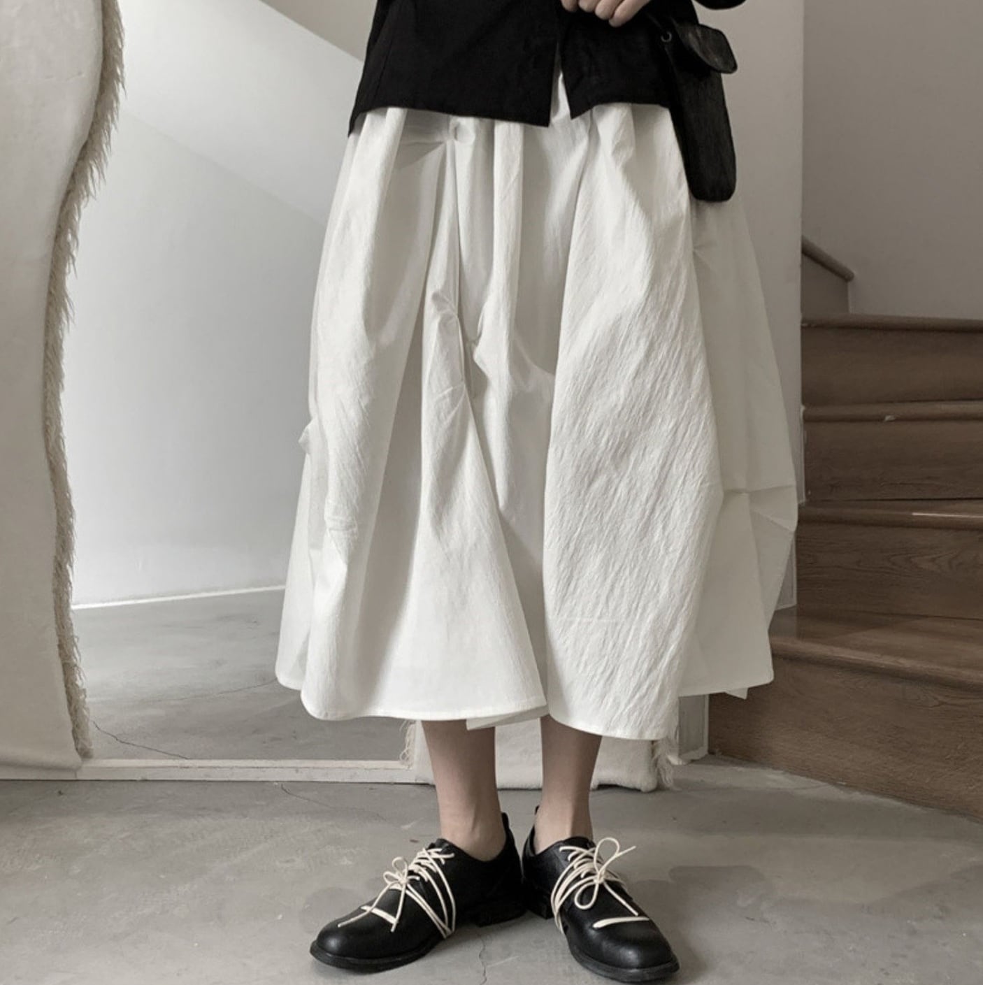 存在感抜群のアシンメトリーフレアスカートで、春秋のファッションにこなれ感をプラス! ハイウエストとタックデザインで大人可愛い&脚長効果も。 モード系からガーリーまで、どんなスタイルにも対応するこのスカートは、デートや女子会、パーティーシーンにも最適。 ホワイト、ブラックのベーシックカラーで、着回し自由自在。インスタ映えも間違いなし! 色展開 ブラック ホワイト サイズ S M L サイズ(cm) S /ウエスト 64 /スカート丈 77〜81 M /ウエスト 68 /スカート丈 78〜82 L /ウエスト 72 /スカート丈 79〜83 ※モニターの仕様や、角度によって多少色合いが異なる場合がございます。 ※サイズは平置きで測定しております。測り方や位置、素材の性質によりサイズに1-4cm程の誤差が生じる場合がございます。 【商品について】 ・こちらの商品は海外お取り寄せ商品です。 ・お手元に到着するまでに10-25日程度お時間をいただいておりますが、さらにお時間がかかってしまう場合や、欠品や不具合などにより商品をご用意できずご注文をキャンセルとさせていただく場合もございます。予めご了承下さいませ。 ・商品はすべて検品を行なった上で発送しております。到着後は、できるだけ早めに商品の状態をご確認願います。 ・海外製品のため日本製よりも縫製や糸の始末が甘い、微細なほつれ、匂いや微細な汚れなどといった場合がございます。その場合には不具合品の対象外となりますのでご了承ください。 ・万が一、初期不良や誤納品がございましたら、商品到着より5日以内にお知らせ下さい。誠意を持って早急に対応させていただきます。 【返品について】 ご注文確定後のキャンセルや内容変更はお受けすることができません。 不良品または誤納品の場合を除き、返品・交換はお受けできませんのでご了承ください。 何かご不明な点などがございましたら、お気軽にお問い合せくださいませ。 sk-356