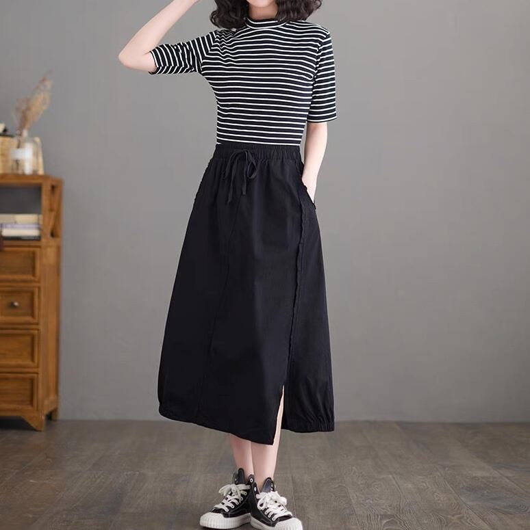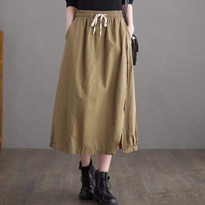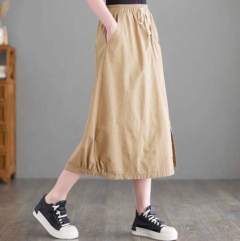色展開 カーキ ブラック ベージュ サイズ M L XL 2XL サイズ(cm) M /ウエスト 62〜90 /ヒップ 118 /スカート丈 76 L /ウエスト 66〜94 /ヒップ 122 /スカート丈 76 XL /ウエスト 70〜98 /ヒップ 126 /スカート丈 77 2XL /ウエスト 74〜102 /ヒップ 130 /スカート丈 77 ※モニターの仕様や、角度によって多少色合いが異なる場合がございます。 ※サイズは平置きで測定しております。測り方や位置、素材の性質によりサイズに1-4cm程の誤差が生じる場合がございます。 【商品について】 ・こちらの商品は海外お取り寄せ商品です。 ・お手元に到着するまでに10-25日程度お時間をいただいておりますが、さらにお時間がかかってしまう場合や、欠品や不具合などにより商品をご用意できずご注文をキャンセルとさせていただく場合もございます。予めご了承下さいませ。 ・商品はすべて検品を行なった上で発送しております。到着後は、できるだけ早めに商品の状態をご確認願います。 ・海外製品のため日本製よりも縫製や糸の始末が甘い、微細なほつれ、匂いや微細な汚れなどといった場合がございます。その場合には不具合品の対象外となりますのでご了承ください。 ・万が一、初期不良や誤納品がございましたら、商品到着より5日以内にお知らせ下さい。誠意を持って早急に対応させていただきます。 【返品について】 ご注文確定後のキャンセルや内容変更はお受けすることができません。 不良品または誤納品の場合を除き、返品・交換はお受けできませんのでご了承ください。 何かご不明な点などがございましたら、お気軽にお問い合せくださいませ。 sk-360
