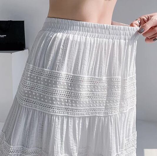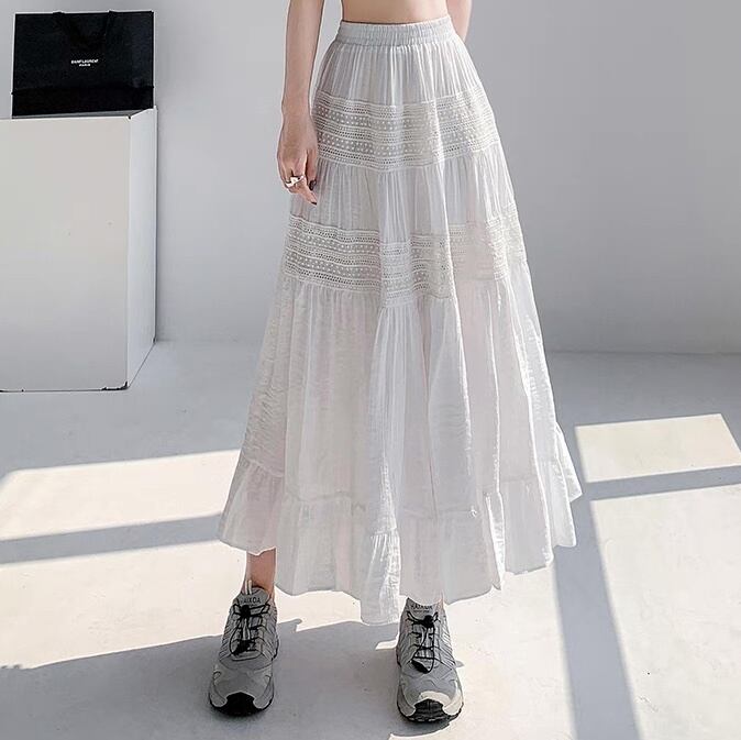 スカート ボトムス レディース フレア ティアード フレアスカート ロングスカート レーススカート ロング マキシ フレア Aライン フェミニン ハイウエスト レース フリル ウエストゴム ヴィンテージ かわいい 大人可愛い きれいめ シンプル おしゃれ レトロ こなれ感 ガーリー エレガント 存在感 抜け感 ラブリー キュート ロリータ プリンセス クラシカル ベーシック ロマンティック ナチュラル デート お出かけ イベント リゾート 楽ちん 体型カバー 脚長 普段使い フリーサイズ 白 ホワイト