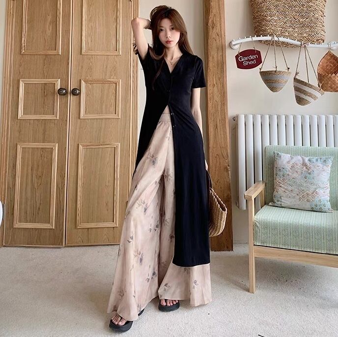上下セット 2点セット トップス パンツ ボトムス カーディガン レディース ストレートパンツ ロングパンツ ロング 半袖 Vネック ハイウエスト かわいい 大人可愛い おしゃれ こなれ感 ガーリー エレガント 抜け感 ヴィンテージ ラブリー キュート クラシカル ロマンティック ナチュラル 無地 花柄 フラワー 春 夏 デート お出かけ イベント リゾート 旅行 女子会 休日 重ね着 楽ちん 体型カバー 美脚 脚長 普段使い 着回し レイヤード トレンド 流行 インスタ映え M L 黒 ブラック ピンク