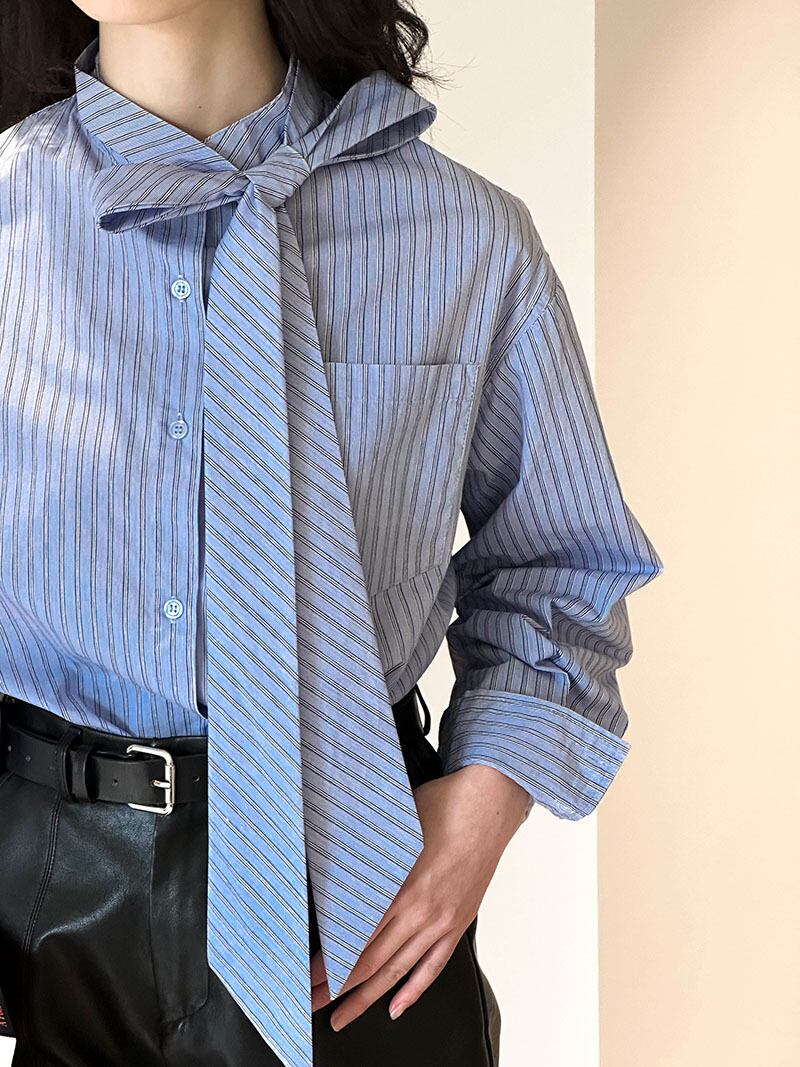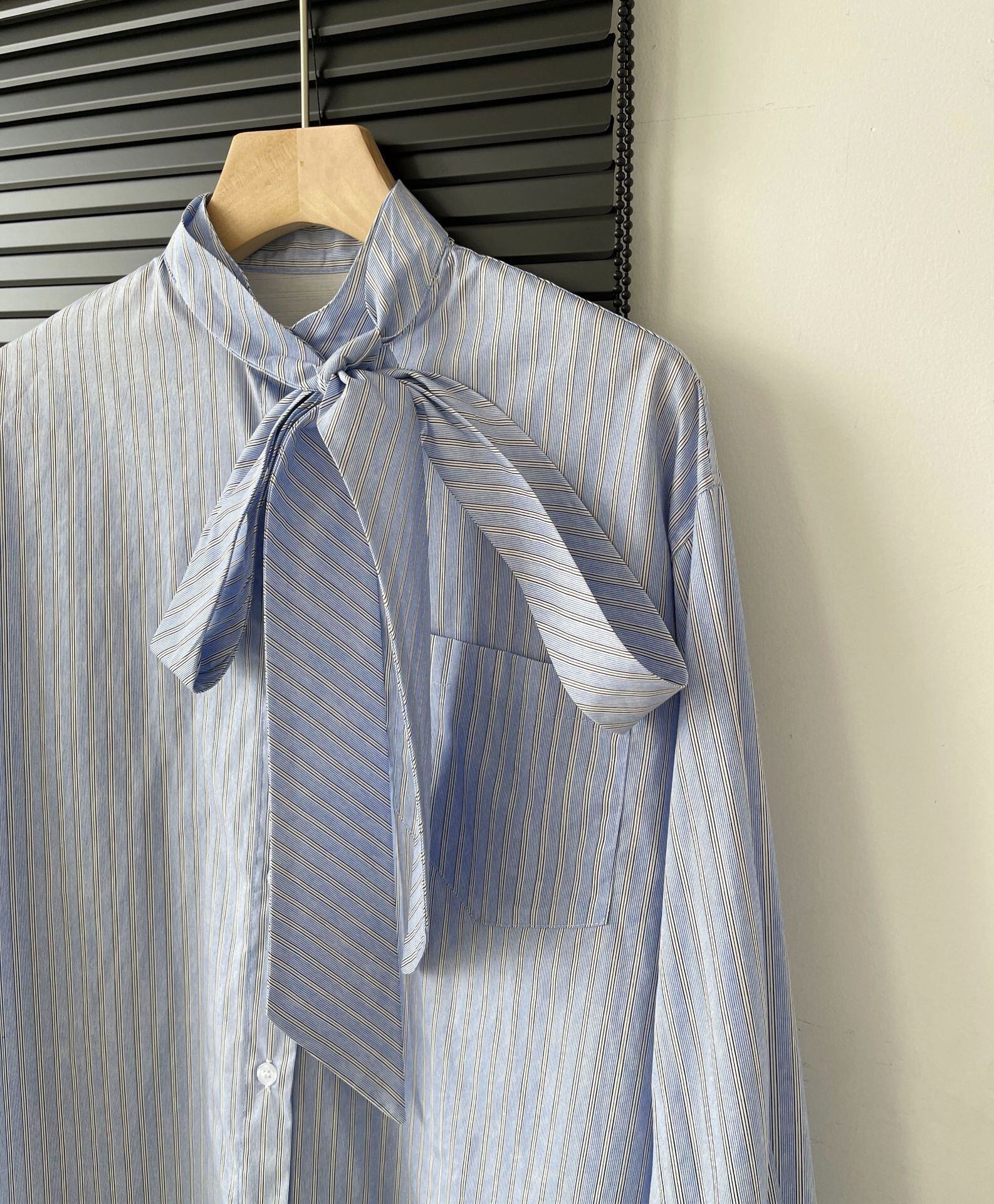 トップス シャツ ブラウス 前開き 長袖 レディース ラウンドネック 丸襟 りぼんタイ ボタン かわいい 大人可愛い シンプル おしゃれ レトロ アジアン 個性的 ストライプ 春 夏 秋 冬 オールシーズン ロングシーズン シーズンレス 授業参観 会議 MTG ミーティング プレゼン ママ 20代 30代 40代 オフィス ビジネス OL 通勤 学生 学校 通学 デート お出かけ イベント 女子会 休日 ショッピング お花見 婚活 重ね着 韓国 オルチャン 普段使い 着回し モテ 清楚 M L ブルー