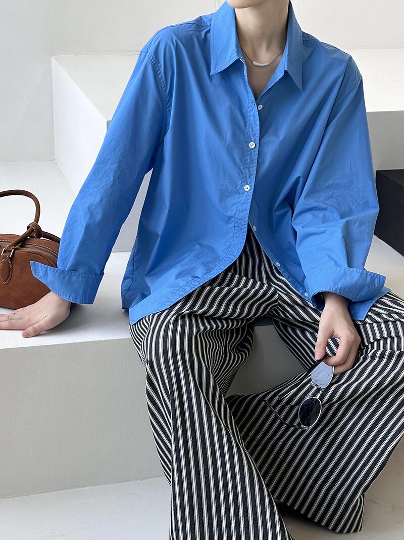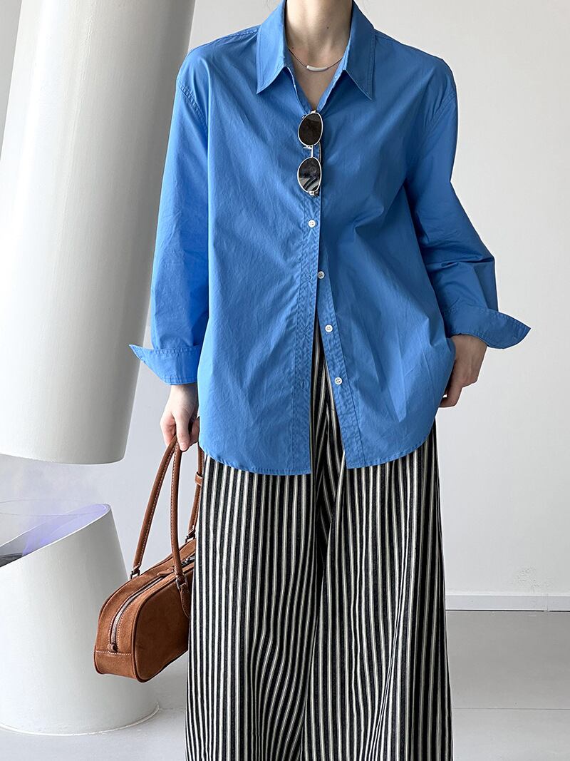 トップス シャツ ブラウス 長袖 レディース 角襟 ボタン きれいめ シンプル カジュアル 上品 おしゃれ ラフ クール フォーマル 無地 春 夏 秋 冬 オールシーズン 入学式 入園式 卒業式 卒園式 ロングシーズン シーズンレス 授業参観 会議 MTG ミーティング プレゼン ママ 20代 30代 40代 オフィス ビジネス OL 通勤 学生 学校 通学 デート お出かけ イベント 女子会 ショッピング お花見 婚活 重ね着 韓国 オルチャン 普段使い 着回し モテ 清楚 定番 M L ブルー