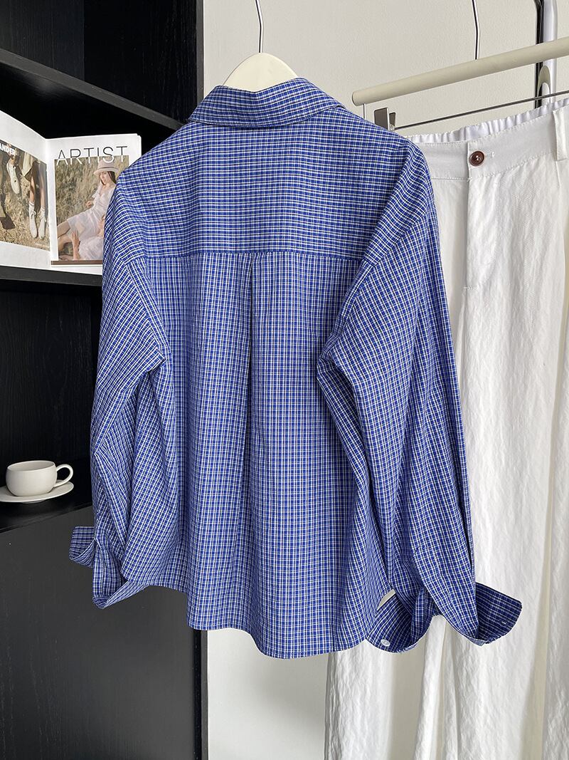 トップス シャツ ブラウス レディース 長袖 襟付き 角襟 ボタン かわいい 大人可愛い きれいめ シンプル カジュアル おしゃれ アジアン ラフ チェック 春 夏 秋 冬 オールシーズン 謝恩会 授業参観 会議 MTG ミーティング プレゼン ママ 20代 30代 40代 オフィス ビジネス OL 通勤 学生 学校 通学 デート お出かけ アウトドア キャンプ 公園 女子会 休日 お花見 合コン コンパ 婚活 重ね着 韓国 オルチャン 楽ちん 普段使い 着回し モテ 清楚 定番 フリーサイズ ブルー