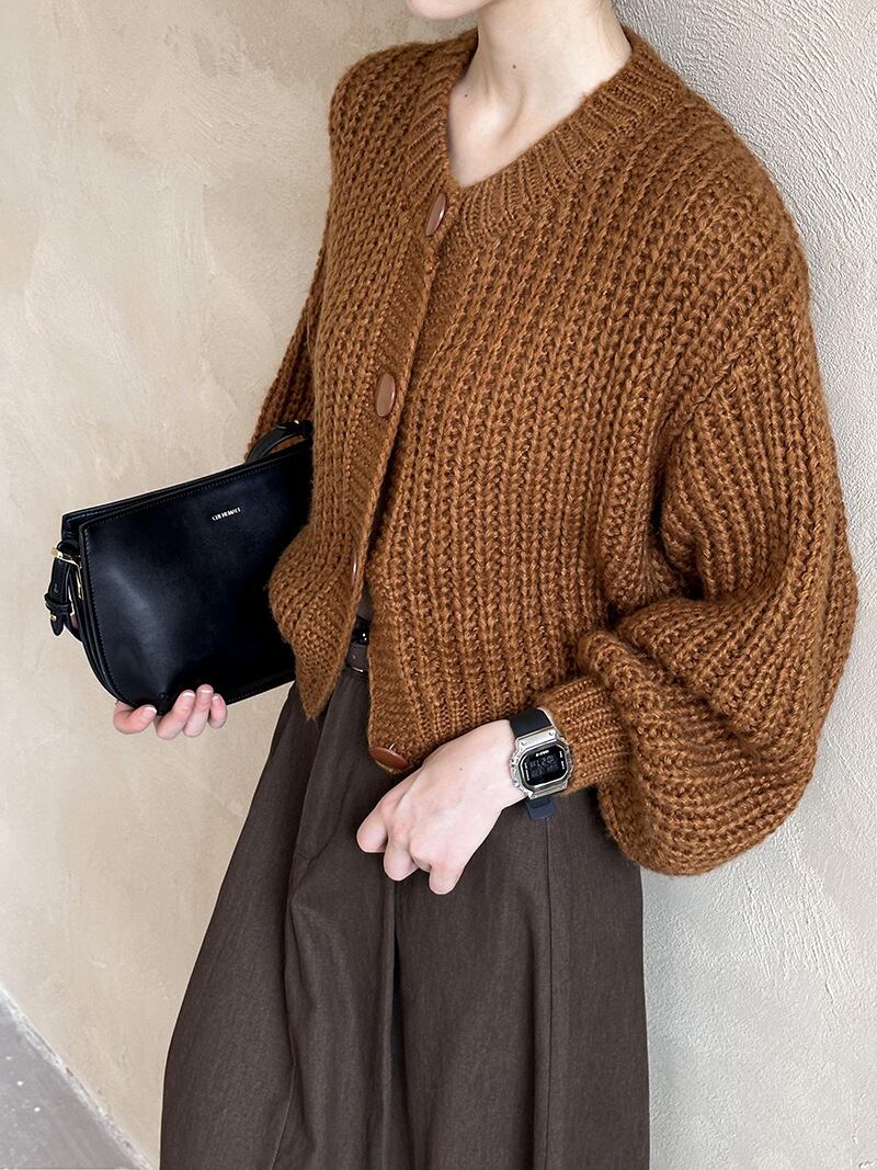 トップス カーディガン レディース ニットカーディガン 長袖 ボリューム袖 前開き ボタン ショート丈 かわいい 大人可愛い きれいめ シンプル 上品 おしゃれ かっこいい カジュアル こなれ感 個性的 主役級 存在感 抜け感 秋 冬 ベーシック ナチュラル クール キュート 無地 女性用 ママ マタニティ OL 通勤 オフィス 学生 通学 デート お出かけ お泊まり 女子会 旅行 休日 カフェ ショッピング コンパ レストラン 普段使い 着回し レイヤード 重ね着 ワンサイズ フリーサイズ 暖かい