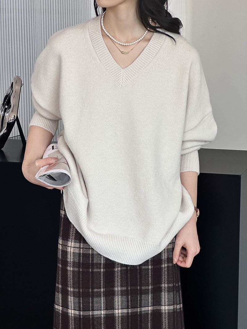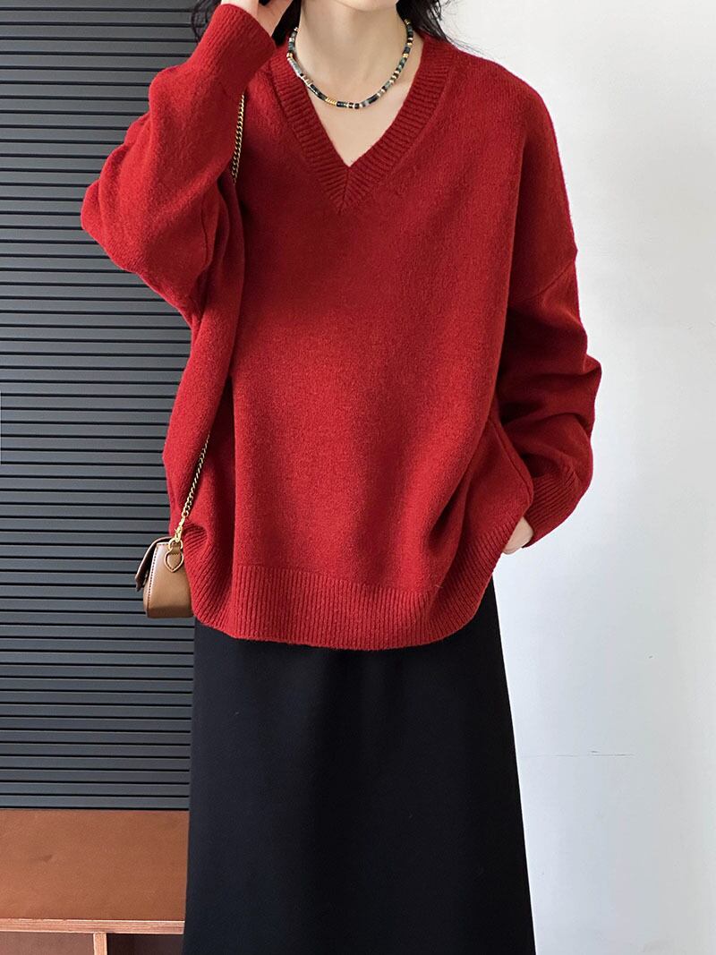 トップス セーター レディース ニットセーター 長袖 萌袖 Vネック プルオーバー ミディアム丈 かわいい 大人可愛い きれいめ シンプル 上品 おしゃれ かっこいい カジュアル こなれ感 個性的 主役級 存在感 抜け感 秋 冬 ベーシック ナチュラル クール キュート 無地 女性用 ママ OL 通勤 オフィス ビジネス 学生 通学 デート お出かけ お泊まり 女子会 旅行 休日 カフェ ショッピング コンパ レストラン 普段使い デイリー 着回し レイヤード 重ね着 ワンサイズ フリーサイズ 暖かい