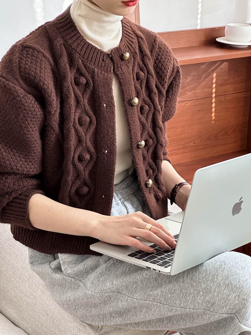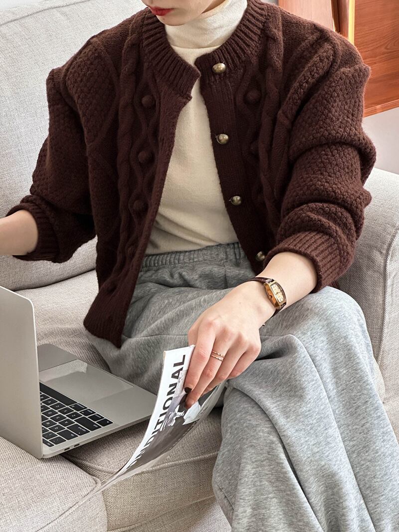 トップス カーディガン レディース ニットカーディガン 長袖 クルーネック 前開き デザインボタン ショート丈 かわいい 大人可愛い きれいめ シンプル 上品 おしゃれ かっこいい カジュアル こなれ感 個性的 主役級 存在感 抜け感 秋 冬 ベーシック ナチュラル キュート ガーリー フェミニン 無地 女性用 ママ OL 通勤 オフィス 学生 通学 デート お出かけ お泊まり 女子会 旅行 休日 カフェ ショッピング コンパ レストラン 普段使い 着回し レイヤード 重ね着 ワンサイズ フリーサイズ