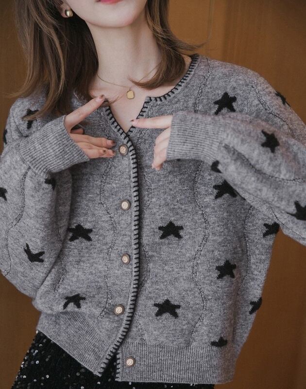 トップス カーディガン レディース 長袖 Vネック ミディアム丈 前開き デザインボタン ふわふわ かわいい 大人可愛い きれいめ シンプル 上品 おしゃれ かっこいい カジュアル こなれ感 個性的 主役級 存在感 抜け感 冬 ベーシック ナチュラル キュート 清楚 星模様 女性用 ママ OL 通勤 オフィス 学生 通学 デート お出かけ お泊まり 女子会 旅行 アウトドア 休日 カフェ ショッピング コンパ レストラン 普段使い デイリー 着回し レイヤード 重ね着 ワンサイズ フリーサイズ 暖かい