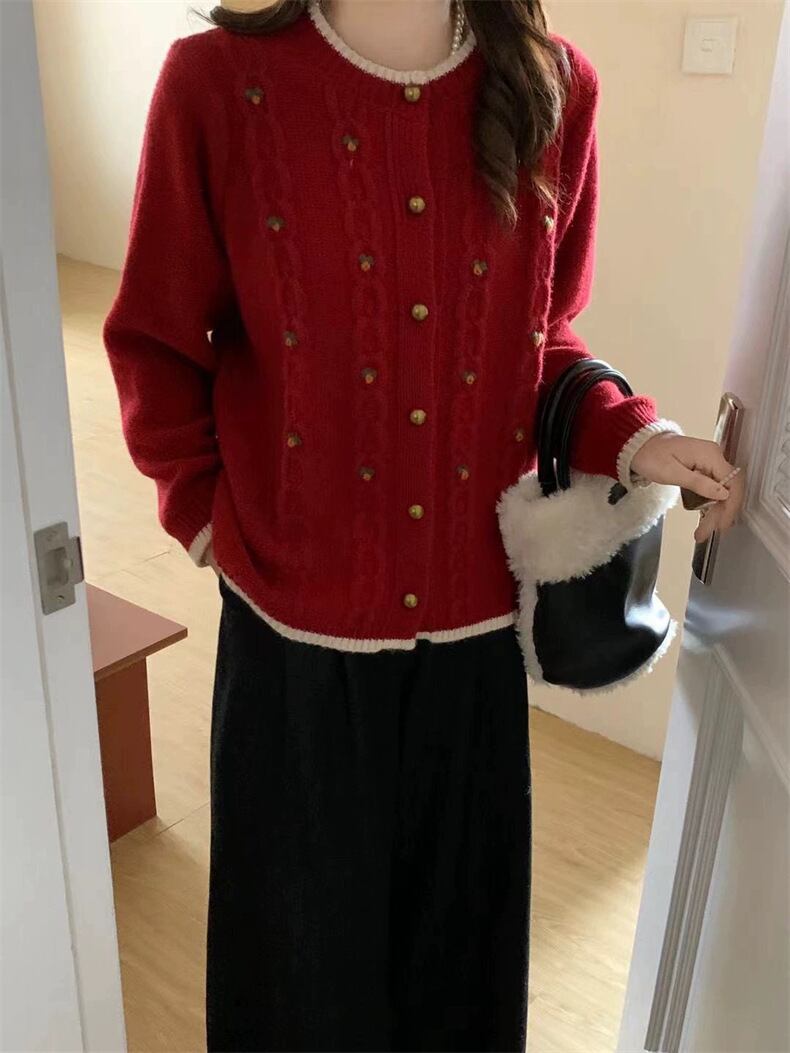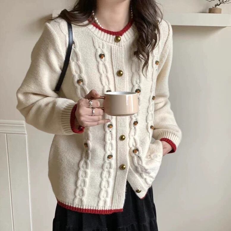 トップス カーディガン レディース 長袖 ラウンドネック ミディアム丈 前開き デザインボタン かわいい 大人可愛い きれいめ シンプル 上品 おしゃれ かっこいい カジュアル こなれ感 個性的 主役級 存在感 抜け感 冬 ベーシック ナチュラル キュート ガーリー 清楚 無地 女性用 ママ OL 通勤 オフィス 学生 通学 デート お出かけ お泊まり 女子会 旅行 アウトドア 休日 カフェ ショッピング コンパ レストラン 普段使い デイリー 着回し レイヤード 重ね着 ワンサイズ 暖かい モテ