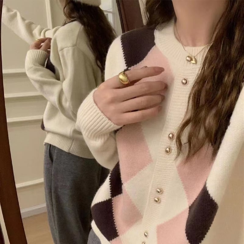 トップス カーディガン レディース 長袖 ラウンドネック ミディアム丈 前開き デザインボタン かわいい 大人可愛い きれいめ シンプル 上品 おしゃれ かっこいい カジュアル こなれ感 個性的 主役級 存在感 抜け感 秋 冬 ベーシック ナチュラル キュート フェミニン 清楚 アーガイル柄女性用 OL 通勤 オフィス 学生 通学 デート お出かけ お泊まり 女子会 旅行 アウトドア 休日 カフェ ショッピング コンパ レストラン 普段使い デイリー 着回し レイヤード 重ね着 ワンサイズ 暖かい モテ