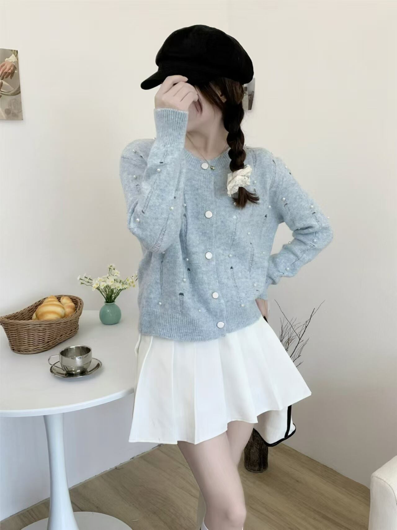 トップス カーディガン レディース 長袖 襟付き ミディアム丈 前開き ボタン フェイクパール かわいい 大人可愛い きれいめ シンプル 上品 おしゃれ かっこいい カジュアル こなれ感 個性的 主役級 存在感 抜け感 秋 冬 ベーシック ナチュラル キュート ガーリー フェミニン 無地 女性用 ママ OL 通勤 オフィス 学生 通学 デート お出かけ お泊まり 女子会 旅行 アウトドア 休日 カフェ ショッピング コンパ レストラン 普段使い デイリー 着回し レイヤード 重ね着 ワンサイズ トレンド