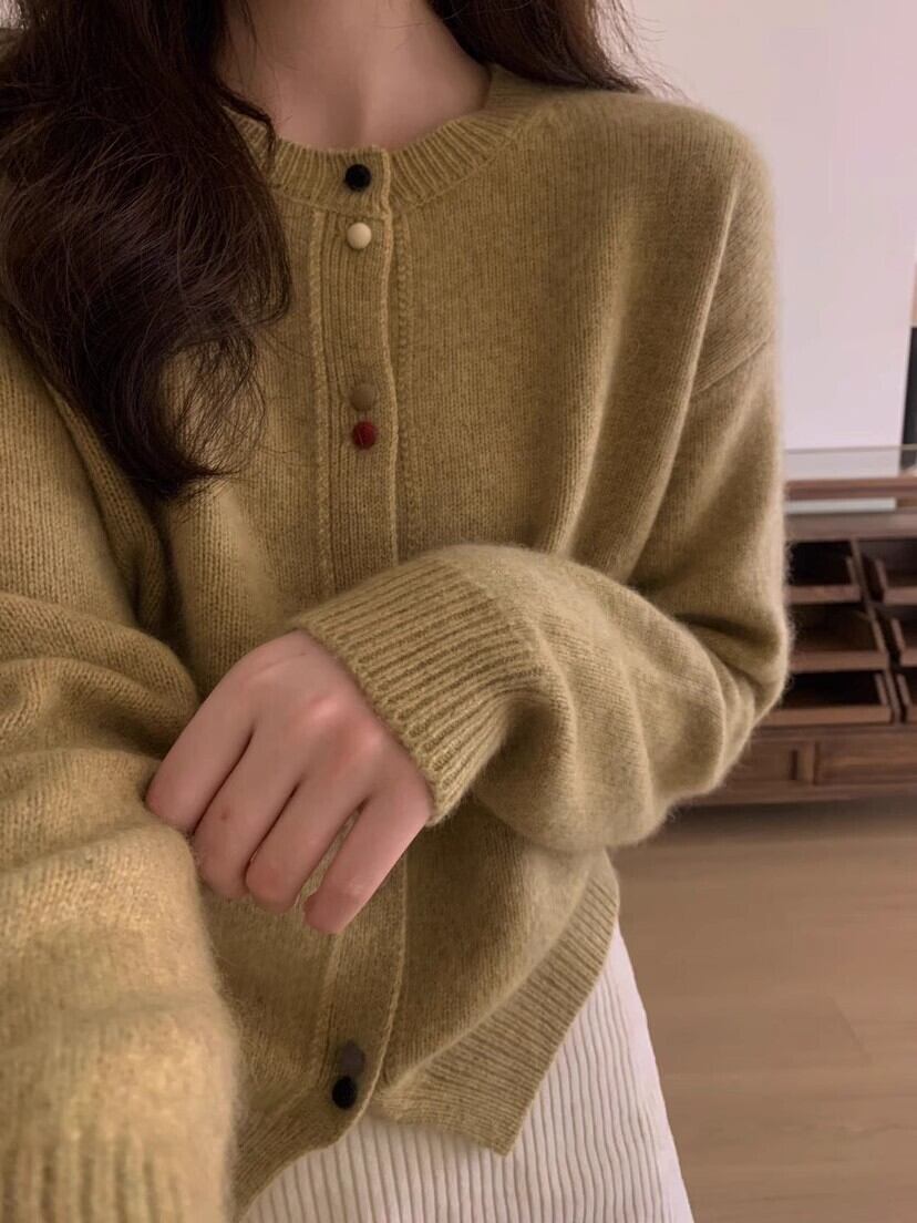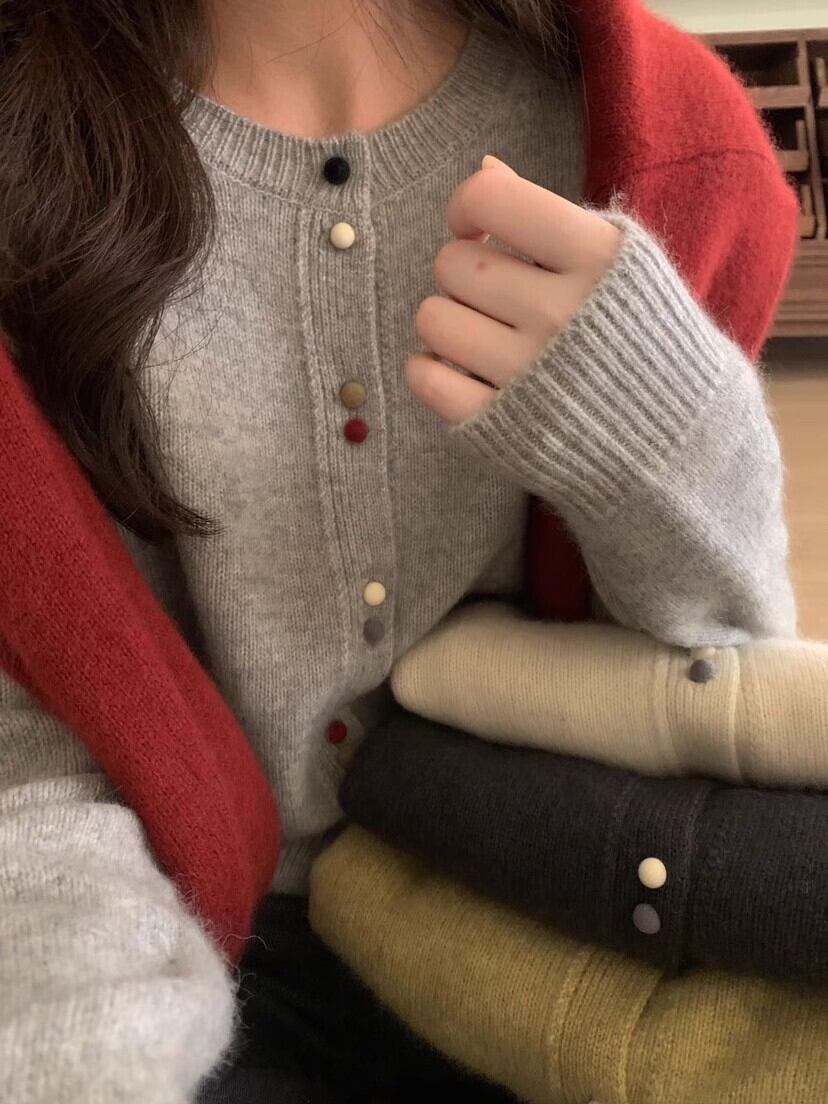 トップス カーディガン ニットカーディガン レディース 長袖 ラウンドネック ミディアム丈 前開き デザインボタン かわいい 大人可愛い きれいめ シンプル 上品 おしゃれ かっこいい カジュアル こなれ感 個性的 主役級 存在感 抜け感 秋 冬 ベーシック ナチュラル キュート クール 清楚 無地 女性用 ママ OL 通勤 オフィス 学生 通学 デート お出かけ お泊まり 女子会 旅行 アウトドア 休日 カフェ ショッピング コンパ レストラン 普段使い デイリー 着回し レイヤード 重ね着 ワンサイズ