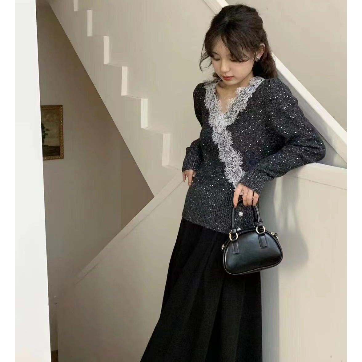 トップス ニットソー レディース 長袖 深Vネック レース フリル 刺? ミディアム丈 プルオーバー 重ね着風 ニット かわいい 大人可愛い きれいめ シンプル 上品 おしゃれ かっこいい カジュアル こなれ感 個性的 主役級 存在感 抜け感 春 秋 冬 ベーシック ナチュラル キュート フェミニン 無地 女性用 ママ OL 通勤 オフィス 学生 通学 デート お出かけ お泊まり 女子会 旅行 アウトドア 休日 カフェ ショッピング コンパ レストラン 普段使い 着回し レイヤード 重ね着 ワンサイズ
