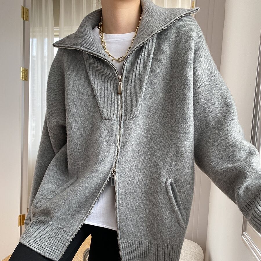 トップス カーディガン ニットカーディガン レディース 長袖 襟付き ミディアム丈 前開き ダブルジップ ポケット かわいい 大人可愛い きれいめ シンプル 上品 おしゃれ かっこいい カジュアル こなれ感 個性的 主役級 存在感 抜け感 秋 冬 ベーシック ナチュラル キュート クール 無地 女性用 ママ OL 通勤 オフィス 学生 通学 デート お出かけ お泊まり 女子会 旅行 アウトドア 休日 カフェ ショッピング コンパ レストラン 普段使い デイリー 着回し レイヤード 重ね着 ワンサイズ