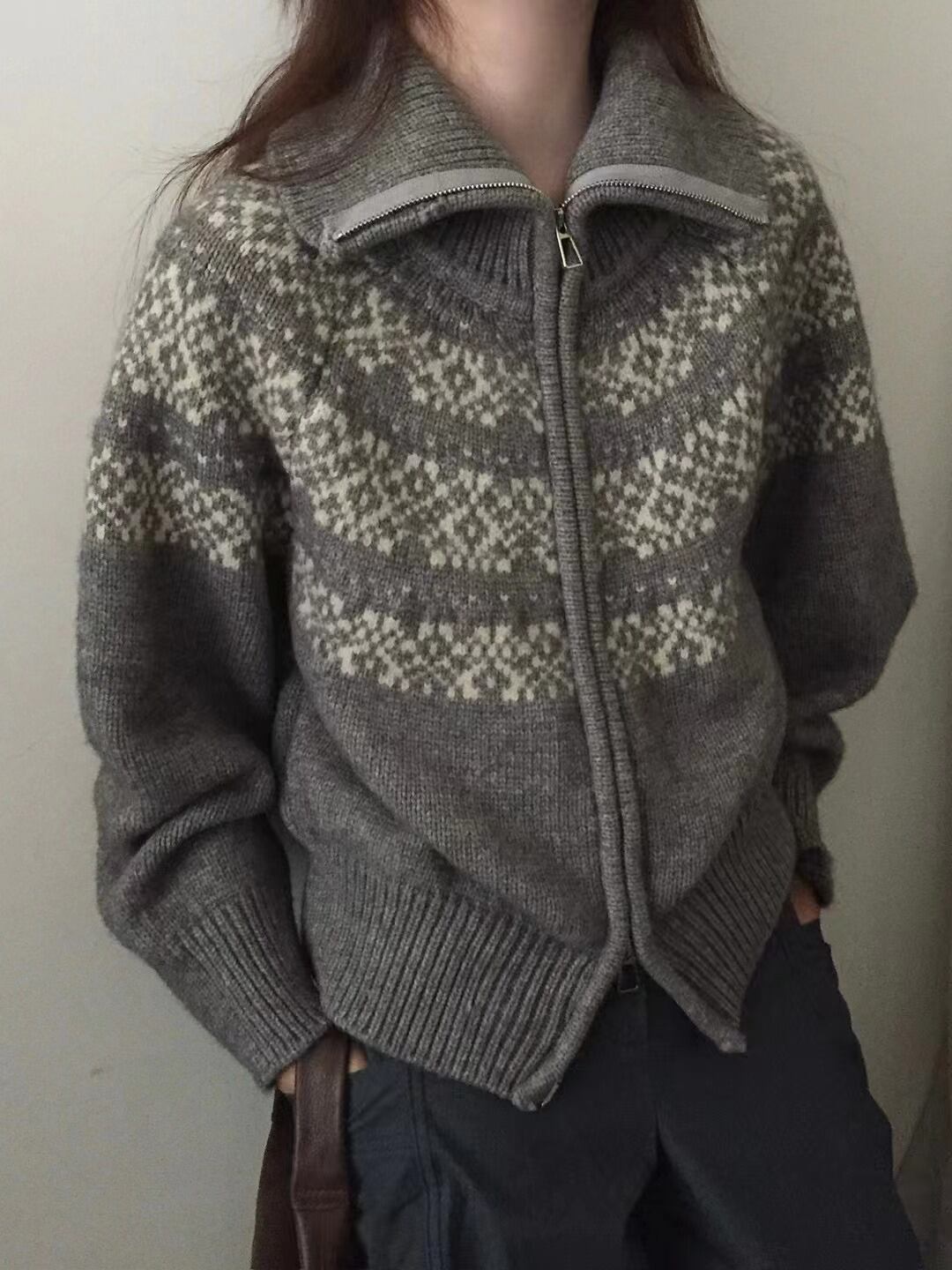 トップス カーディガン レディース 長袖 ハイネック 前開き ダブルジップ ミディアム丈 ジャガードニット かわいい 大人可愛い きれいめ シンプル 上品 おしゃれ かっこいい カジュアル こなれ感 個性的 ラフ 主役級 存在感 抜け感 秋 冬 ベーシック ナチュラル キュート クール メンズライク 女性用 ママ OL 通勤 学生 通学 デート お出かけ お泊まり 女子会 旅行 アウトドア 休日 カフェ ショッピング コンパ レストラン 普段使い デイリー 着回し レイヤード 重ね着 ワンサイズ