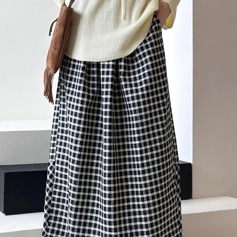 ボトムス スカート ロングスカート レディース セミフレア ロング丈 ウエストゴム 切り替えデザイン かわいい 大人可愛い きれいめ シンプル 上品 おしゃれ かっこいい カジュアル こなれ感 個性的 レトロ ラフ きちんと 主役級 存在感 抜け感 春 夏 ベーシック ナチュラル キュート チェック柄 女性用 ママ OL 通勤 オフィス 学生 通学 デート お出かけ お泊まり 女子会 旅行 休日 カフェ ショッピング コンパ レストラン 普段使い デイリー 着回し 脚長 M L 楽ちん トレンド