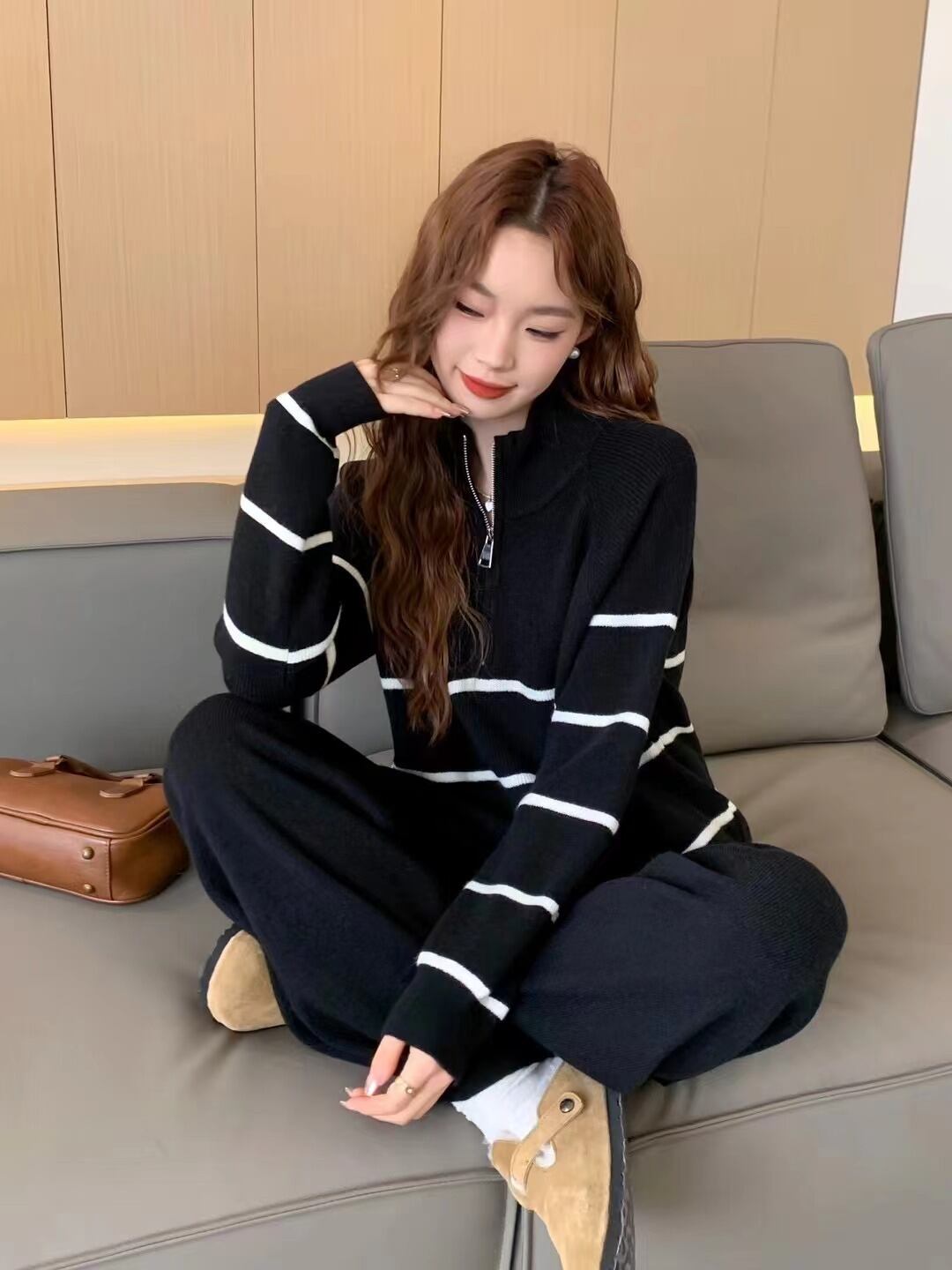 2点セット セットアップ 上下セット レディース セーター 長袖 ハイネック ハーフジップ プルオーバー ロングパンツ ウエストゴム ルームウエア かわいい 大人可愛い きれいめ シンプル 上品 おしゃれ かっこいい カジュアル こなれ感 個性的 主役級 存在感 抜け感 秋 冬 ベーシック ナチュラル クール キュート ボーダー柄 無地 女性用 ママ OL 学生 通学 デート お出かけ お泊まり 女子会 旅行 休日 カフェ ショッピング コンパ レストラン 普段使い 着回し レイヤード 重ね着 ワンサイズ