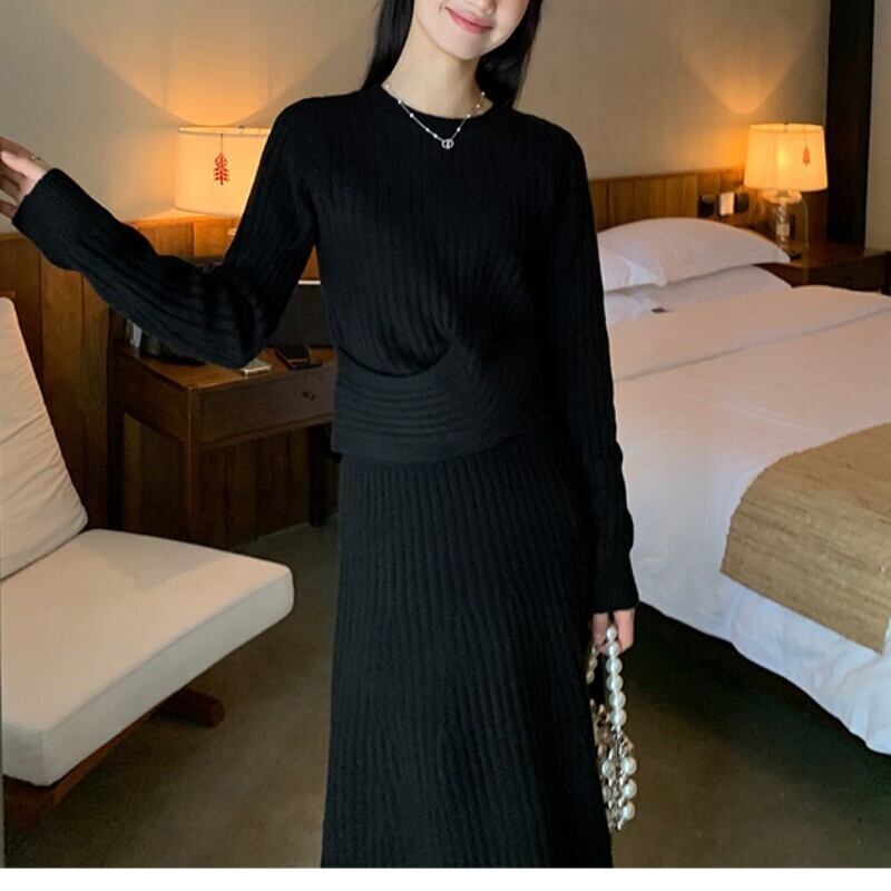 2点セット セットアップ 上下セット レディース ニットソー 長袖 プルオーバー ウエストマーク ミモレ丈スカート ウエストゴム Aライン かわいい 大人可愛い きれいめ シンプル 上品 おしゃれ かっこいい カジュアル こなれ感 個性的 主役級 存在感 抜け感 秋 冬 ベーシック ナチュラル クール キュート フェミニン 無地 女性用 ママ OL 学生 通学 デート お出かけ お泊まり 女子会 旅行 休日 カフェ ショッピング コンパ レストラン 普段使い 着回し レイヤード 重ね着 ワンサイズ