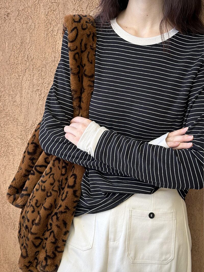 トップス カットソー レディース 長袖 ラウンドネック ミディアム丈 プルオーバー 重ね着風 かわいい 大人可愛い きれいめ シンプル 上品 おしゃれ かっこいい カジュアル こなれ感 個性的 主役級 存在感 抜け感 オールシーズン ベーシック ナチュラル キュート クール ボーダー柄 女性用 ママ OL 通勤 オフィス 学生 通学 デート お出かけ お泊まり 女子会 旅行 アウトドア 休日 カフェ ショッピング コンパ レストラン 普段使い デイリー 着回し レイヤード 重ね着 ワンサイズ モテ