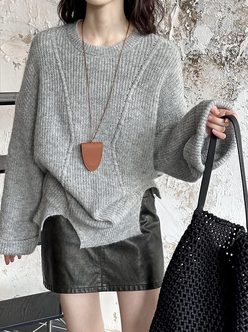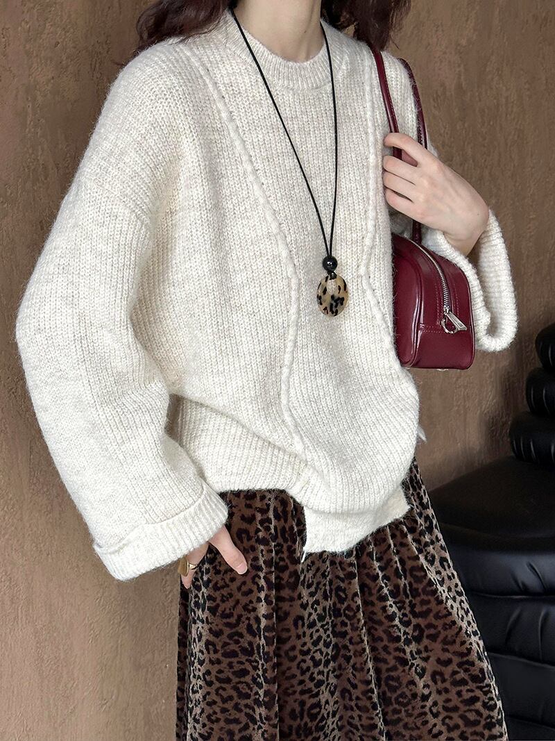 トップス セーター レディース 長袖 ボリューム袖 ラウンドネック ミディアム丈 プルオーバー かわいい 大人可愛い きれいめ シンプル 上品 おしゃれ かっこいい カジュアル こなれ感 個性的 主役級 存在感 抜け感 秋 冬 ベーシック ナチュラル キュート クール 無地 女性用 ママ OL 通勤 オフィス 学生 通学 デート お出かけ お泊まり 女子会 旅行 アウトドア 休日 カフェ ショッピング コンパ レストラン 普段使い デイリー 着回し レイヤード 重ね着 ワンサイズ ゆったり モテ