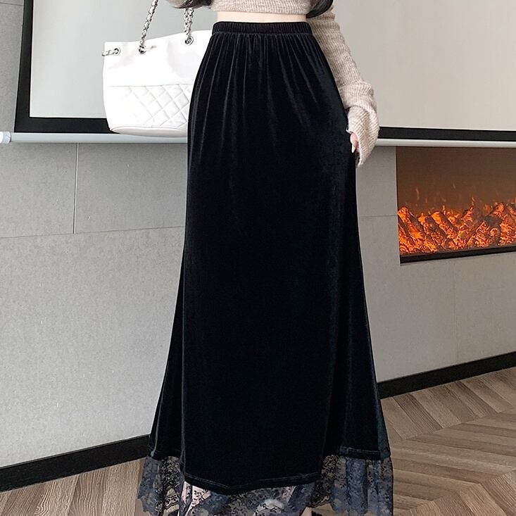ボトムス スカート ロングスカート レディース フレアスカート ロング丈 ハイウエスト ウエストゴム ベルベット レース 刺? かわいい 大人可愛い きれいめ シンプル 上品 おしゃれ かっこいい カジュアル こなれ感 個性的 レトロ 主役級 存在感 抜け感 秋 冬 ベーシック ナチュラル キュート クール エレガント 無地 女性用 OL 通勤 オフィス 学生 通学 デート お出かけ お泊まり 女子会 旅行 休日 カフェ ショッピング コンパ レストラン 普段使い デイリー 着回し 脚長 S M L XL