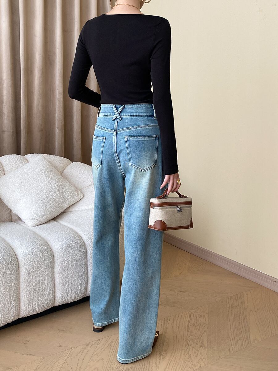 パンツ ボトムス レディース デニム Gパン ストレートパンツ ロングパンツ デニムパンツ ボーイフレンド ストリート 股上深め ファスナー ポケット ハイウエスト ウォッシュ デニム ブルーデニム 裏起毛 かわいい 大人可愛い きれいめ シンプル 上品 おしゃれ かっこいい レトロ こなれ感 ラフ ガーリー クール 抜け感 ヴィンテージ キュート ベーシック アメリカン アクティブ ナチュラル お出かけ 楽ちん 体型カバー 美脚 脚長 普段使い 着回し ロールアップ 定番 S M L XL 水色 ブルー