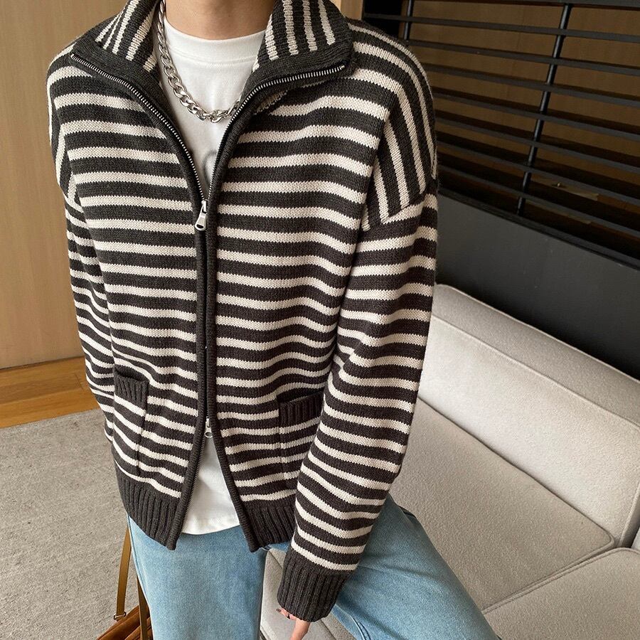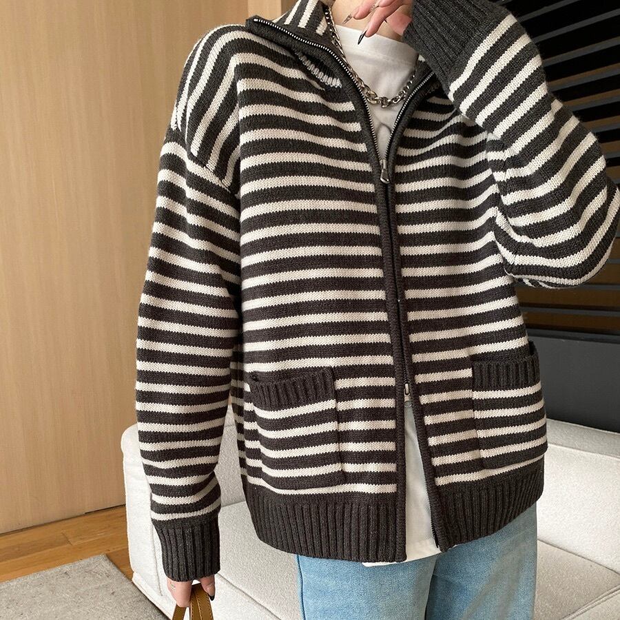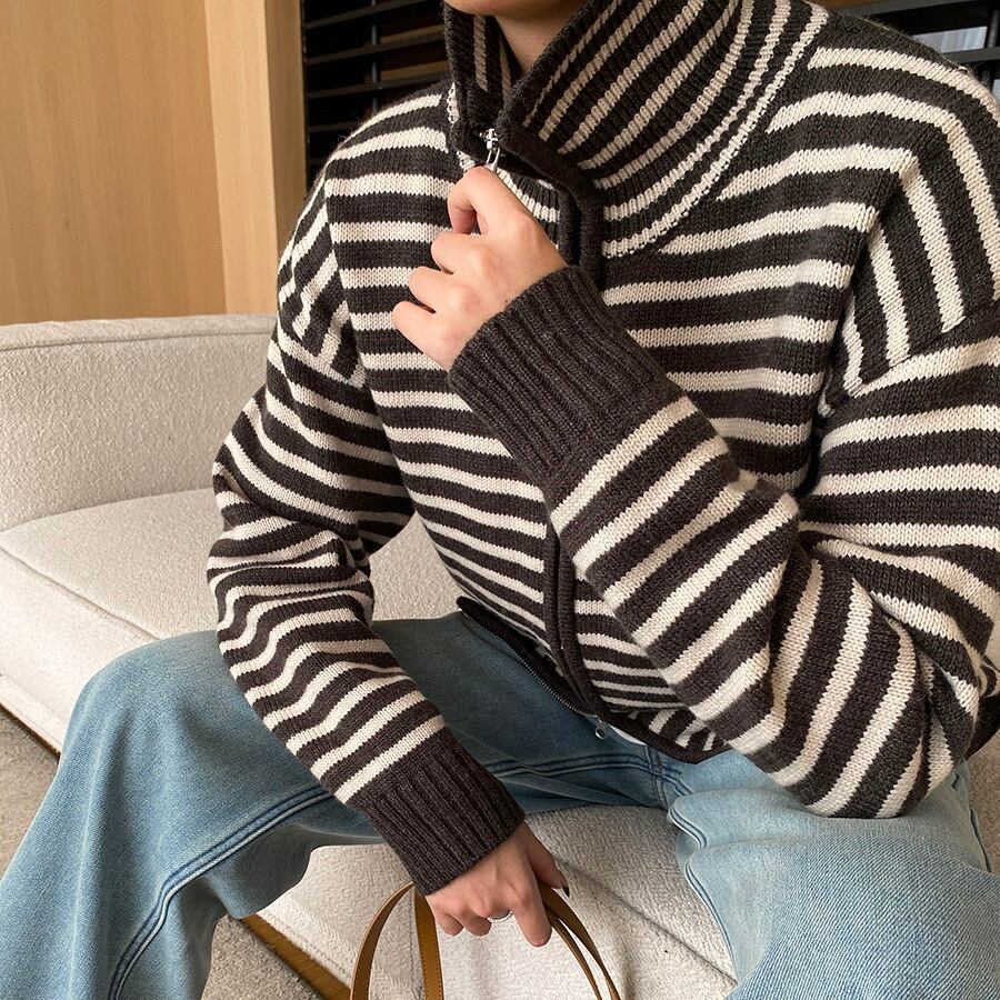 トップス ニット カーディガン レディース 長袖 ハイネック ストリート ファスナー ポケット アメカジ ジッパー きれいめ シンプル カジュアル おしゃれ かっこいい レトロ こなれ感 ラフ メンズライク マニッシュ ボーイッシュ スポーティー 抜け感 ヴィンテージ キュート ベーシック アメリカン プレッピー アクティブ ナチュラル ボーダー お出かけ 旅行 女子会 休日 カフェ 重ね着 韓国 オルチャン 普段使い 着回し レイヤード トレンド 流行 定番 フリーサイズ クリーム 茶色 ブラウン