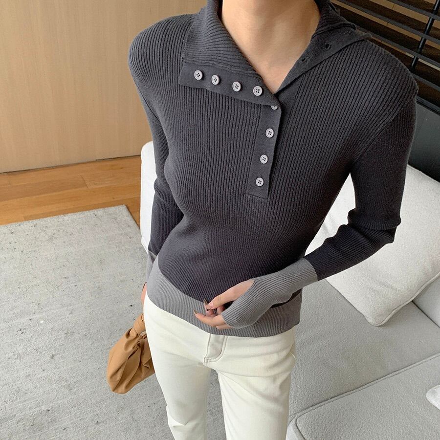 トップス ニット セーター レディース アシンメトリー 長袖 ハイネック タートルネック タイト スリム 細身 切り替え ボタン かわいい 大人可愛い きれいめ シンプル 上品 おしゃれ こなれ感 ガーリー 個性的 クール 存在感 ラブリー キュート 都会的 ナチュラル 無地 デート お出かけ イベント 旅行 レストラン 女子会 休日 ショッピング 合コン コンパ カフェ 普段使い 着回し レイヤード トレンド 流行 インスタ映え フリーサイズ クリーム 黒 ブラック 茶色 ブラウン グレー バイカラー