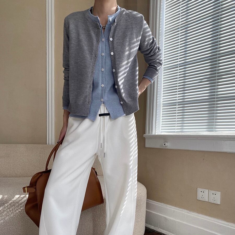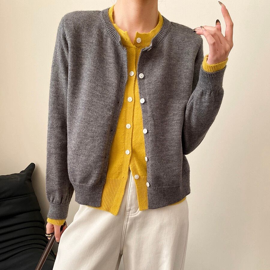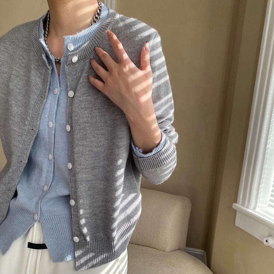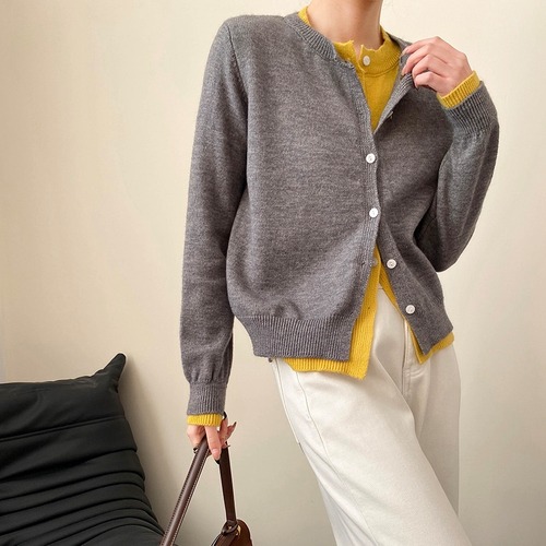 トップス ニット カーディガン レディース 前開き 長袖 ラウンドネック ドッキング 重ね着 ボタン かわいい きれいめ シンプル おしゃれ かっこいい ガーリー 個性的 クール エレガント 抜け感 キュート クラシカル ベーシック ナチュラル 無地 母の日 授業参観 MTG ミーティング プレゼン オフィス 通勤 お出かけ 休日 ショッピング カフェ 重ね着 韓国 オルチャン 楽ちん 普段使い 着回し レイヤード トレンド 流行 インスタ映え グレー ライトグレー ダークグレー バイカラー ネイビー